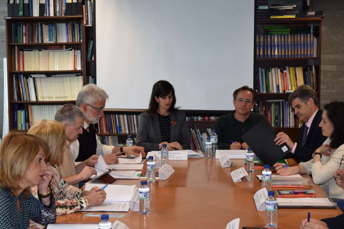 La reunión de hoy ha estado presidida por la secretaria general de Cultura, Miriam García Cabezas, que ha estado acompañada por el director general de Bibliotecas, Museos y Patrimonio Cultural, Francisco Pérez Urbán, y el coordinador del Plan de Fomento de la Lectura y director de la Editora Regional, Eduardo Moga.