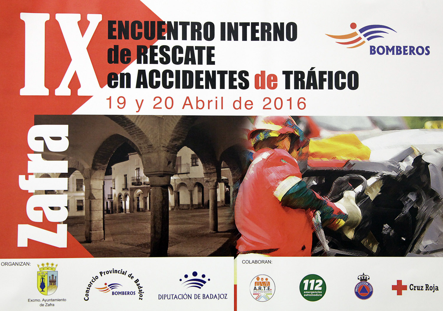 Zafra acoge los días 19 y 20 de abril el IX Encuentro Interno de Rescate en Accidentes de Tráfico que organiza el Consorcio Provincial de Extinción de Incendios (CPEI) de Badajoz, la Diputación Provincial y el Ayuntamiento segedano. En esta edición participan los equipos de bomberos del CPEI pacense (dos), los consorcios de Málaga y Córdoba, la Diputación de Bizkaia y el Ayuntamiento de Andújar. Colaboran la Asociación de Rescate en Tráficos y Emergencias (ARTE), Cruz Roja y 112 Extremadura.