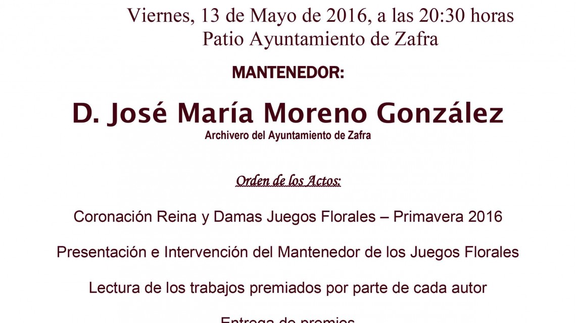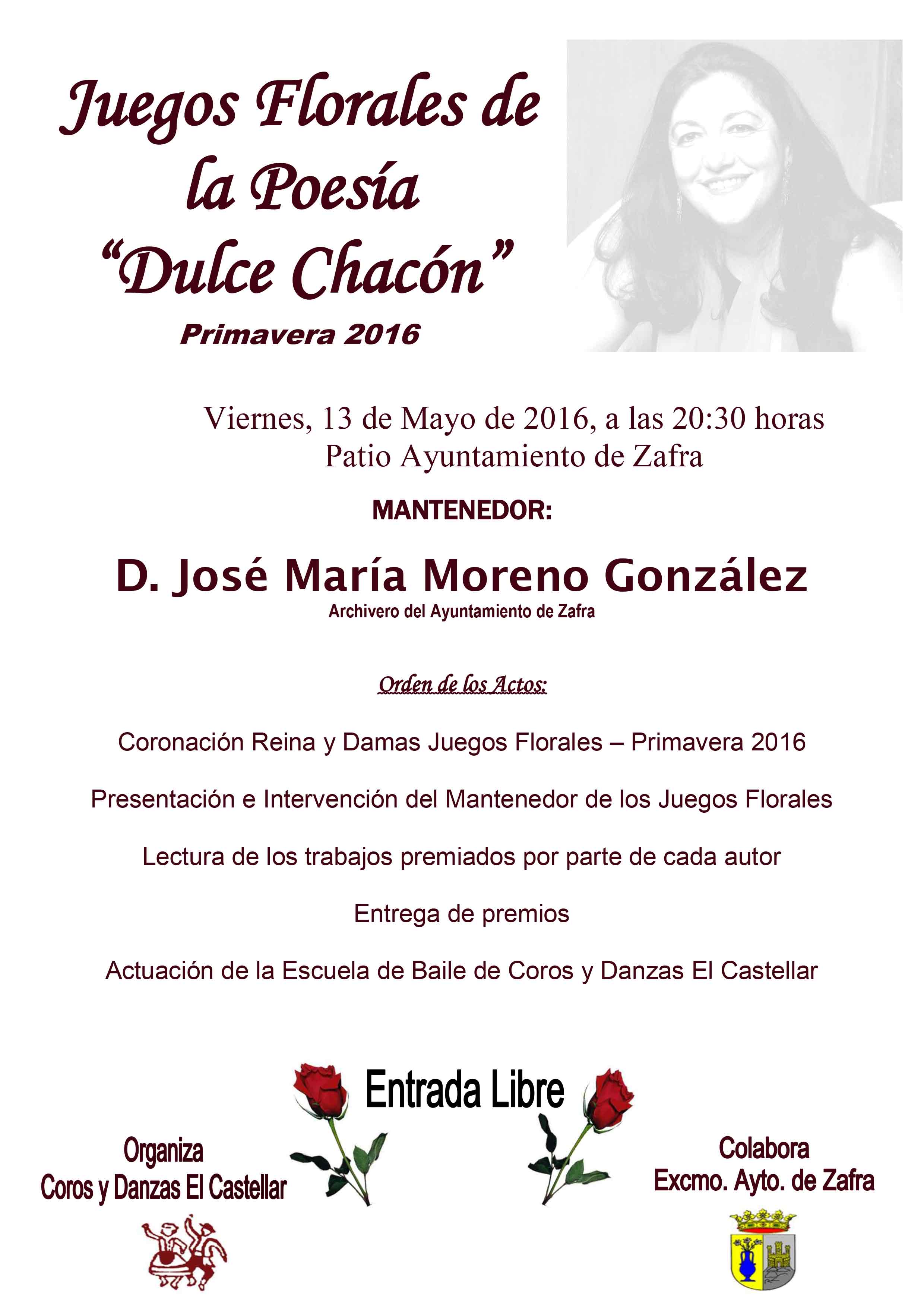 Juegos Florales de la Poesía “Dulce Chacón” el 13 de mayo en el Ayuntamiento de Zafra Compartir noticia en: Infoprovincia — mayo 8, 2016
