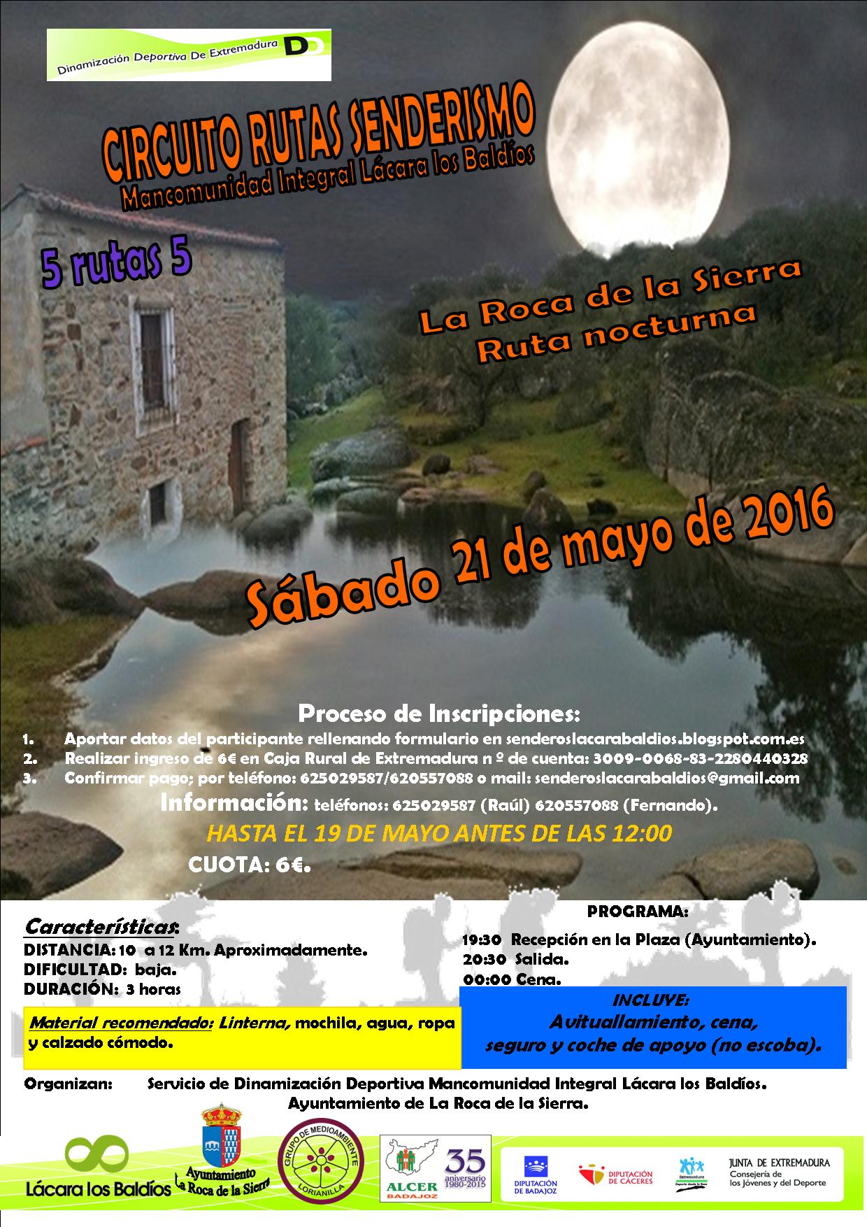 DESCRIPCIÓN: Una ruta que recorrerá la valiosa Dehesa Boyal de La Roca de la Sierra, un ecosistema en perfecta conservación. Molino medieval, tumbas antropomorficas, “vereinas” y senderos intrincados, regatos y charcas, avistamiento de aves, estupendas vistas, un poco de todo para disfrutar de esta joya de la naturaleza mas Extremeña. Este año con el aliciente de la luna llena que ofrecerá unos paisajes nocturnos inolvidables.