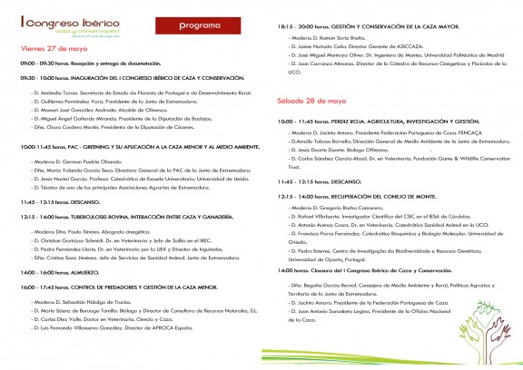 Greening y su aplicación a la caza menor y al medio ambiente, la tuberculosis bovina, el control de predadores y gestión de la caza menor, gestión y conservación de la caza mayor, la perdiz roja y recuperación del conejo monte son las temáticas a abordar en las seis ponencias que comprende el congreso que cerrará sus puertas el sábado 28 de mayo al mediodía.