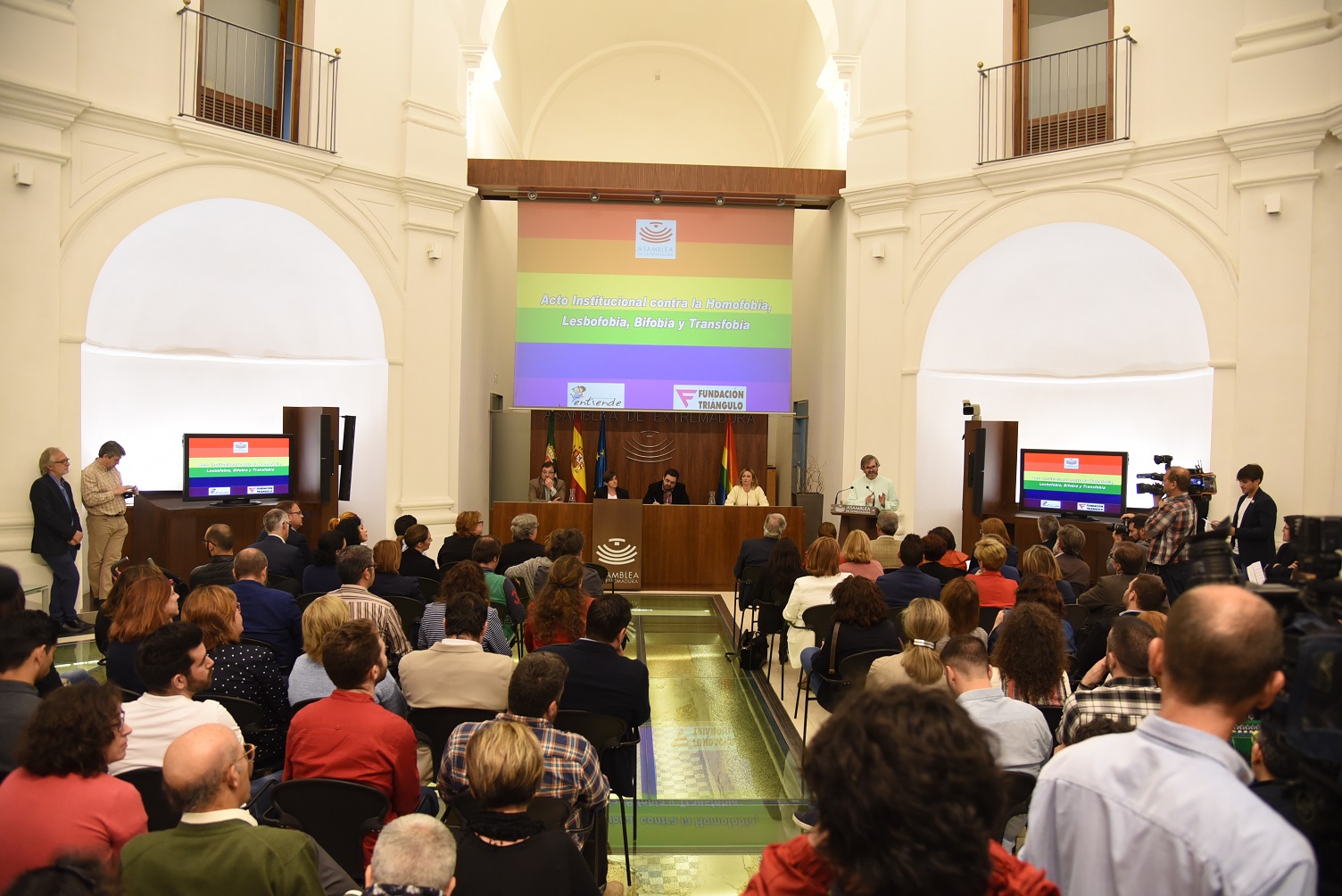 En el acto han intervenido asimismo el presidente de la Junta de Extremadura, Guillermo Fernández Vara, el presidente de la Fundación Triángulo, José María Núñez y la presidenta de Extremadura Entiende, Sisi Cáceres, así como el ex diputado, Víctor Casco, la activista Begoña Sánchez, el adolescente transexual, Pau Ramón y la madre de una niña transexual, Anabel Pastor.