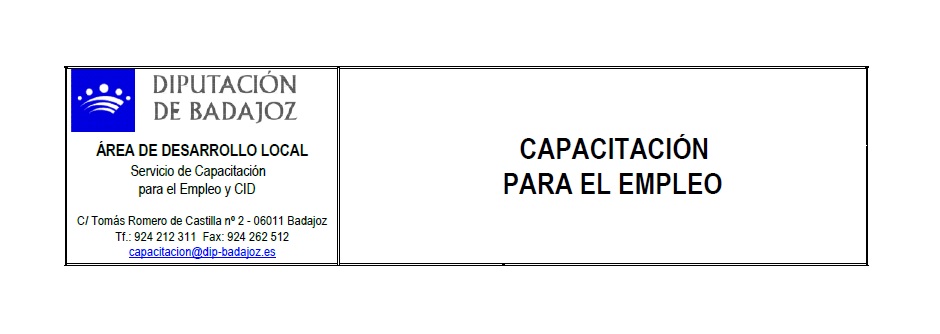 Curso Competencias claves para la empleabilidadEl curso perteneciente al Plan de Capacitación para el Empleo y Desarrollo Local de la Diputación de Badajoz está previsto para este mes de mayo y se impartirá de acuerdo a dos grupos de edad de entre 25 y 40 años y con formación en licenciatura, diplomatura o ciclos de grado medio o superior, y de 41 a 55 años con trayectoria profesional de al menos siete años laborables y titulación de bachillerato.