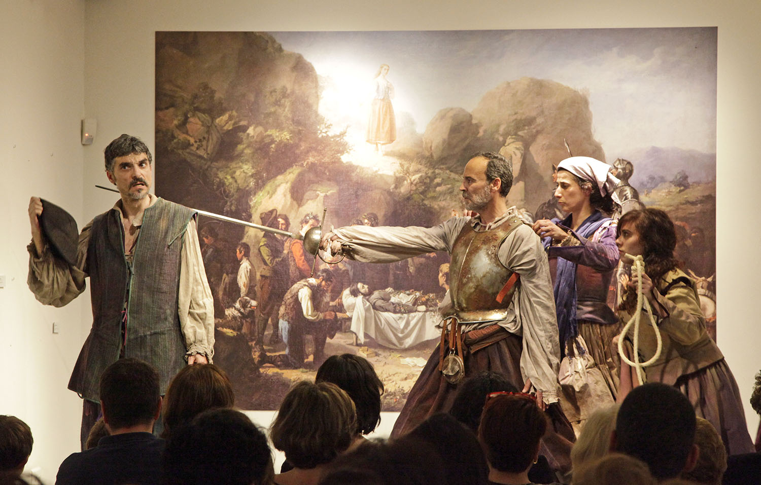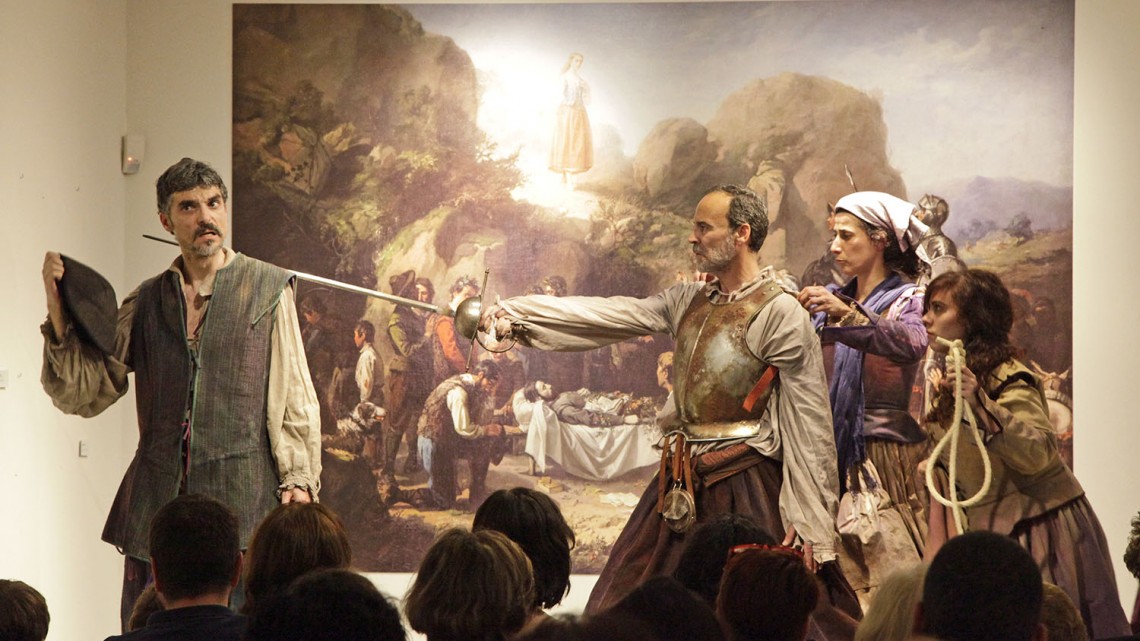 En la actividad, que también sirvió para conmemorar el IV Centenario de la muerte de Miguel de Cervantes, actores y músicos dieron vida a al cuadro del pintor sevillano que representa la historia recogida en los capítulos XII y XIII de El Quijote en los que se cuenta la historia de un pastor, Crisóstomo, muerto por el rechazo de la pastora Marcela a las pretensiones amorosas de aquél.