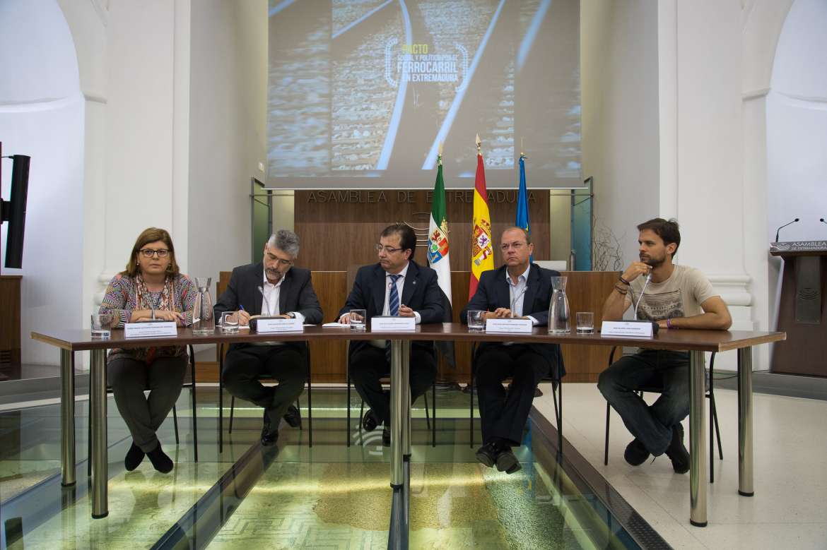 El jefe del Ejecutivo autonómico ha realizado estas declaraciones en la Asamblea donde ha firmado con los representantes de los grupos parlamentarios el Pacto por el Ferrocarril de Extremadura.