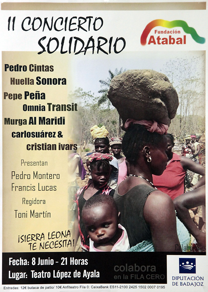 La presidenta de ATABAL ha informado que su Ong lleva trabajando en Sierra Leona desde 2004 y que destinan el 90 por ciento de sus recursos económicos a trabajar para atender a los niños huérfanos no sólo en sus necesidades básicas de alimentación sino también en su educación y formación. ATABAL ha construido en Sierra Leona 18 escuelas a las que asisten cada vez un mayor porcentaje de niñas.