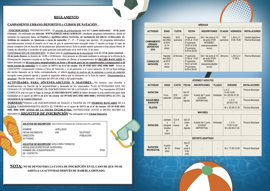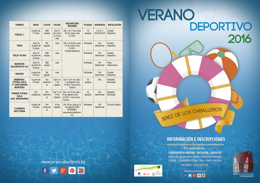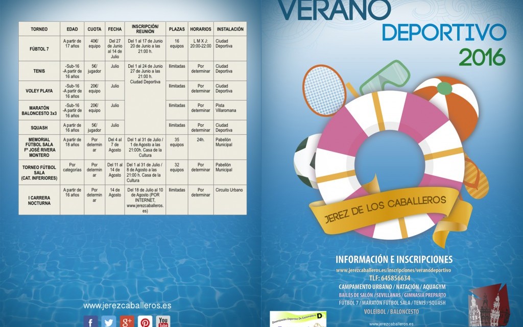 Ya se encuentra abierto el periodo de inscripción para participar en las actividades propuestas dentro de la programación del “Verano Deportivo 2016” de Jerez de los Caballeros.