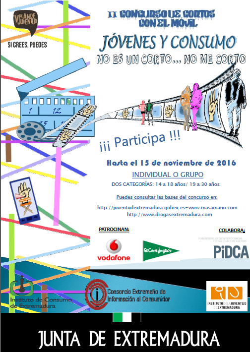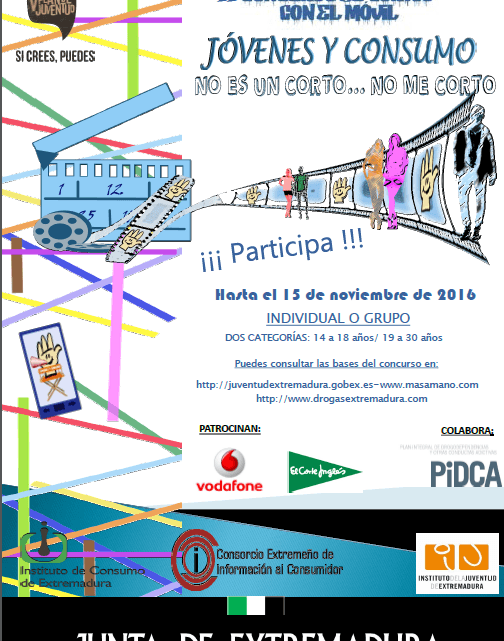 Desde el Consorcio Extremeño de Información al Consumidor y el Instituto de la Juventud de Extremadura, con la colaboración este año del Plan Integral de Drogodependencia y Prevención de Conductas Aditivas de Extremadura, se ha convocado el II Concurso de Cortos con el Móvil bajo el nombre de Jóvenes y Consumo-No es un corto, no me corto.