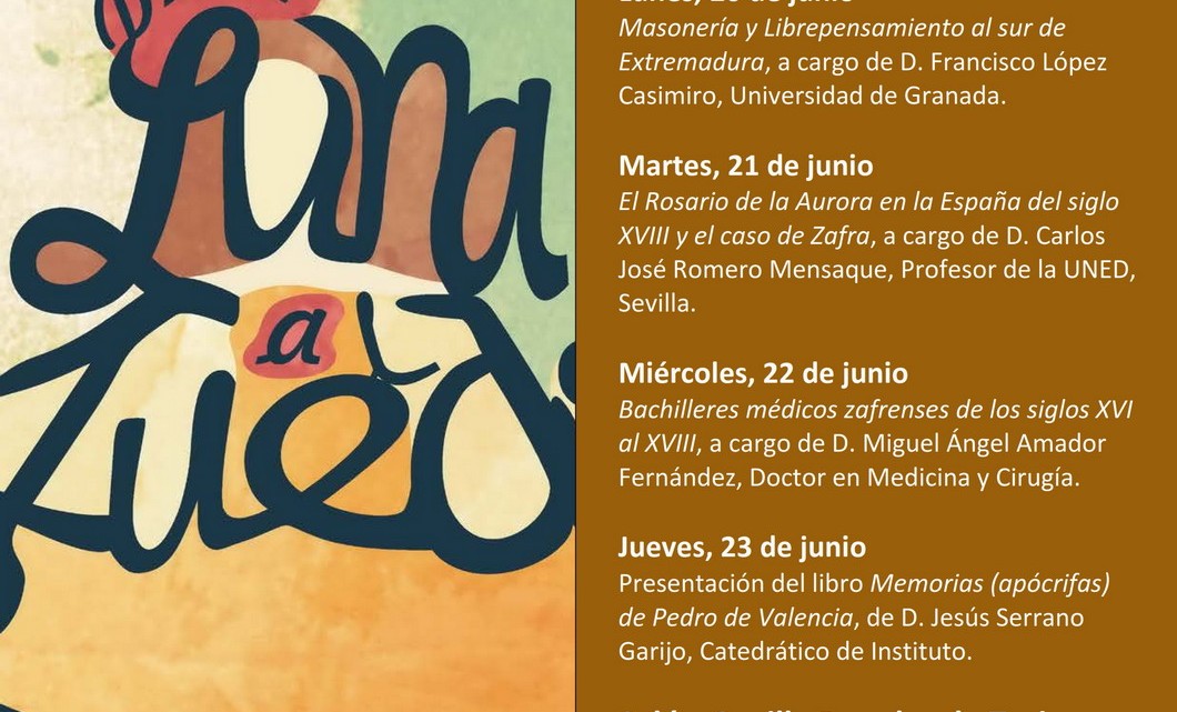 La edición arranca este año con la participación de Francisco López Casimiro, profesor de la Universidad de Granada, quien abordará el tema “Masonería y Librepensamiento al sur de Extremadura”.