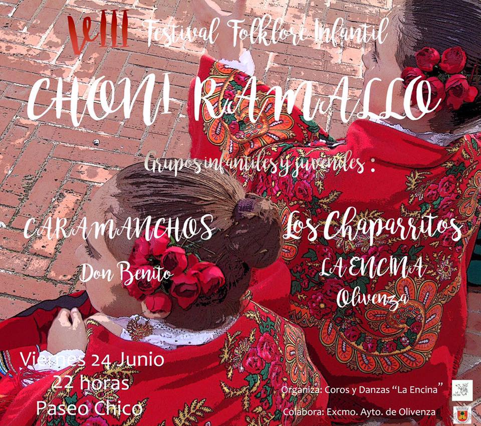 Mañana viernes a las 22:00 horas en la Avenida de Portugal de Olivenza, más conocida como paseo chico, tendrá lugar una nueva edición del Festival Infantil “Choni Ramallo” que ya va por su octava edición.
