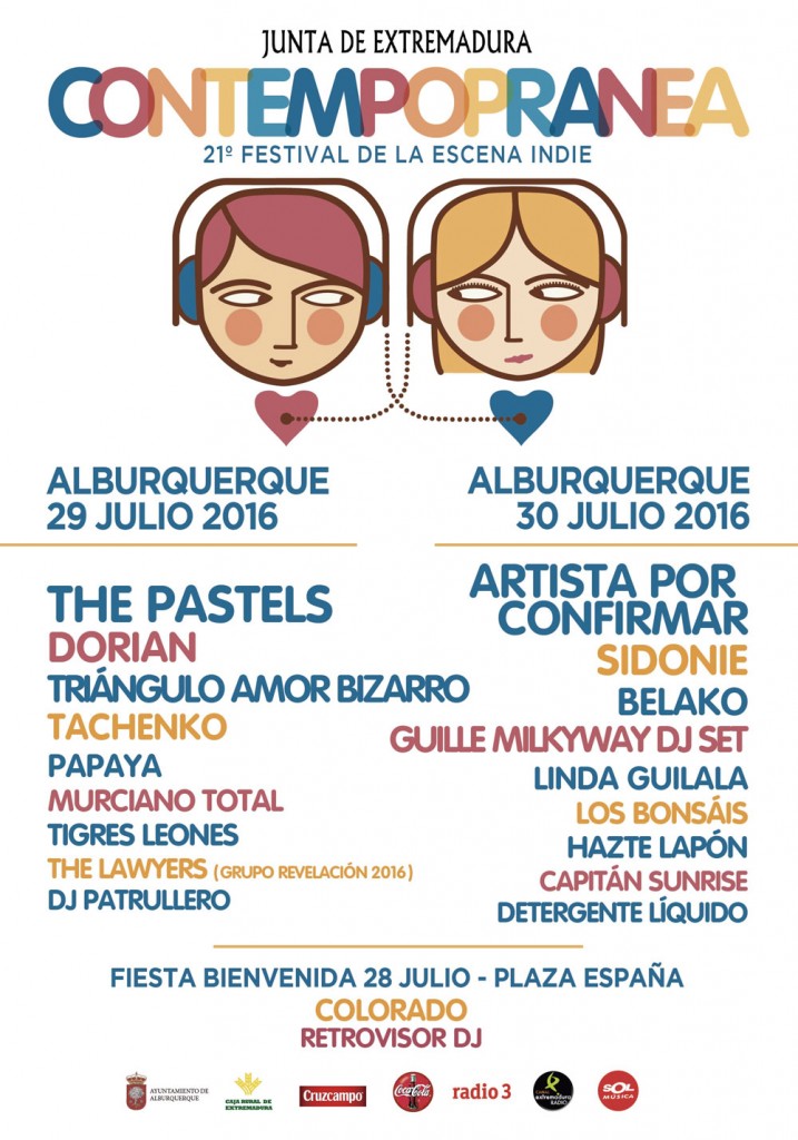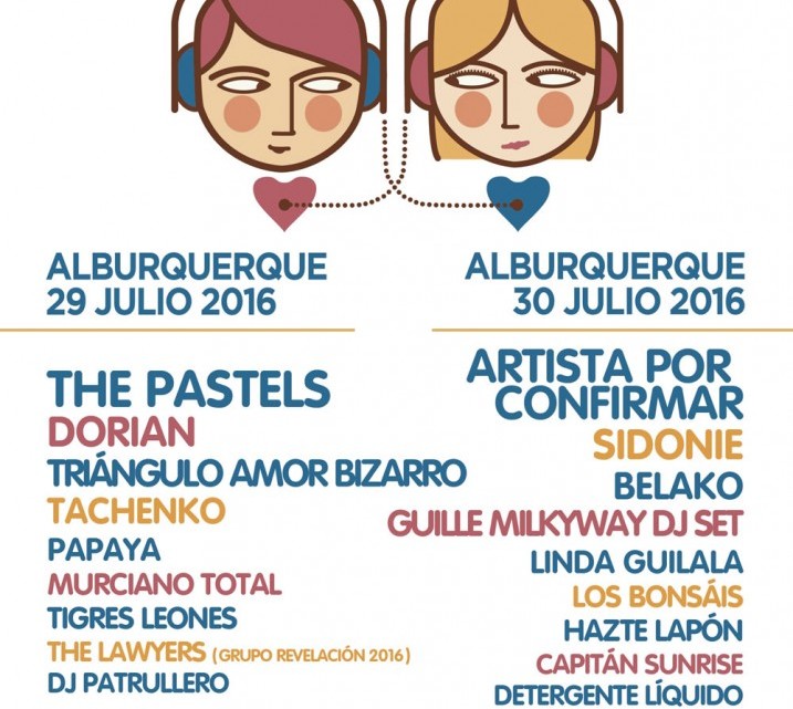 En Alburquerque actuarán también bandas nacionales consagradas como son Sidonie, Triángulo de Amor Bizarro, Dorian y Tachenko, junto a nombres emergentes como Tigres Leones, Muricano Total, Papaya, Hazte Lapón o Detergente Líquido.