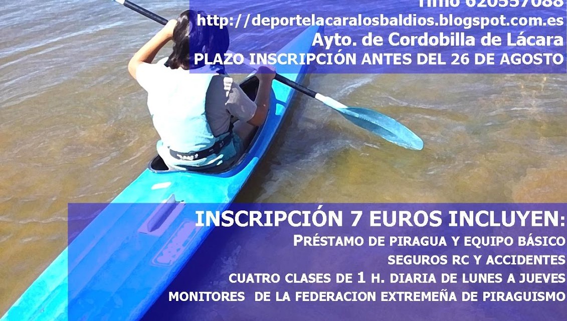 Ya está abierto el plazo de nuevo para estos cursos que organiza la FEXP con la colaboración de este Servicio de Deportes en el embalse de Boquerón, en Cordobilla de Lácara del 29 de agosto al 1 de septiembre. Apto para niños desde aproximadamente 9 años en adelante y para adultos. Se dispondrá de al menos dos tipos de piraguas para ir probando a lo largo de los cuatro días de duración del curso.