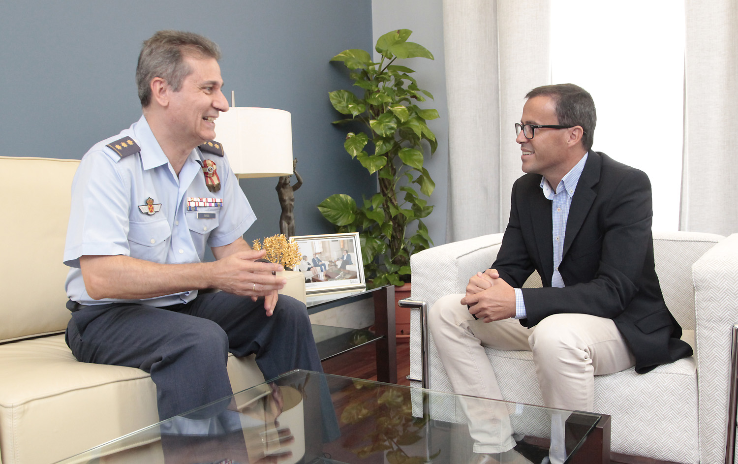 Se ha celebrado esta mañana en la Diputación de Badajoz la visita protocolaria del nuevo Coronel Jefe de la Base Aérea de Talavera la Real, Francisco Baños Castillo, al presidente de la institución provincial, Miguel Ángel Gallardo.