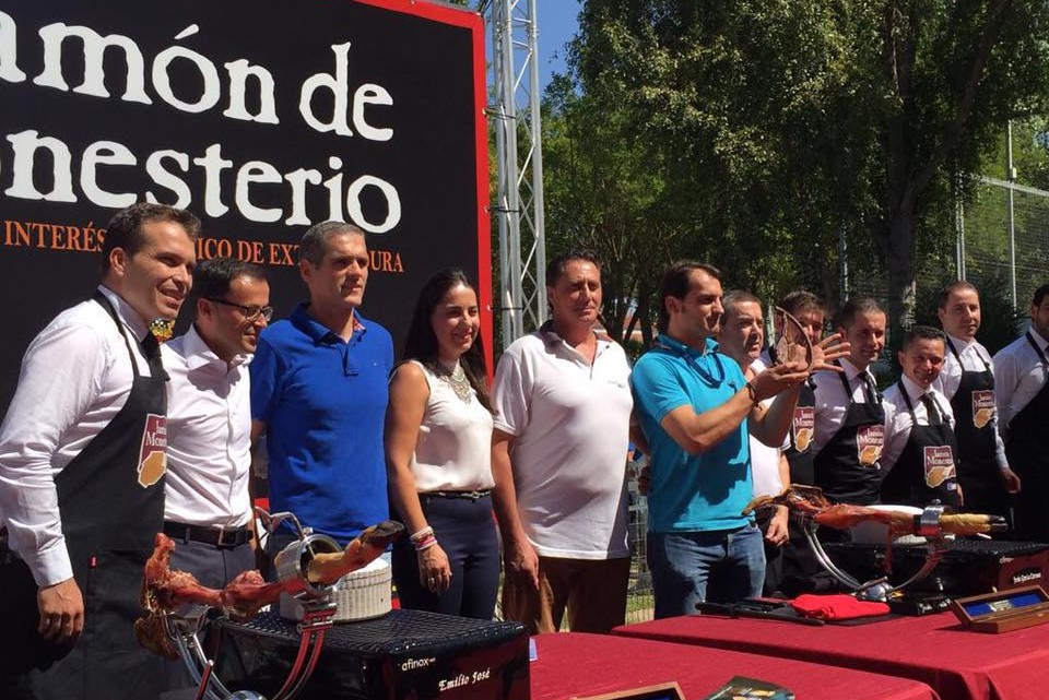 Al XXVII Día del Jamón Asimismo han asistido unas 5.000 personas , sobre todo a la degustación popular que se celebró en los más de 20.000 metros cuadrados dedicados por el Ayuntamiento a esta celebración en los recintos de la piscina municipal, el parque del Tejar y sus zonas ajardinadas exteriores y que se completó, como novedad, con una exhibición de corte de jamón.