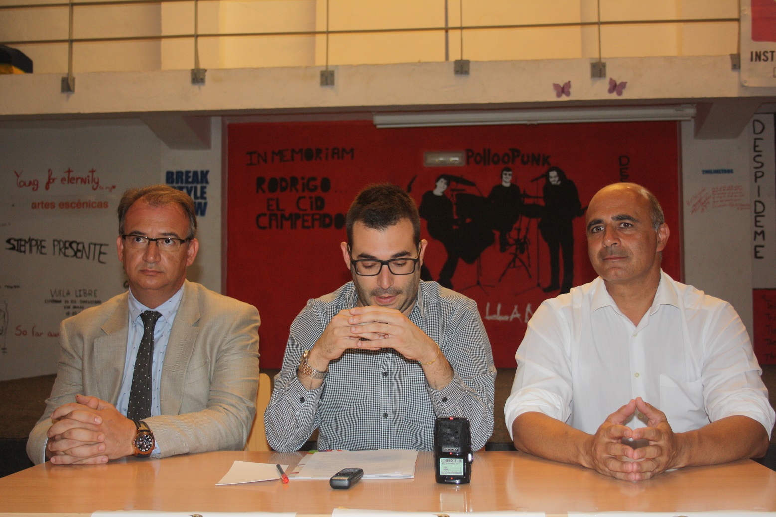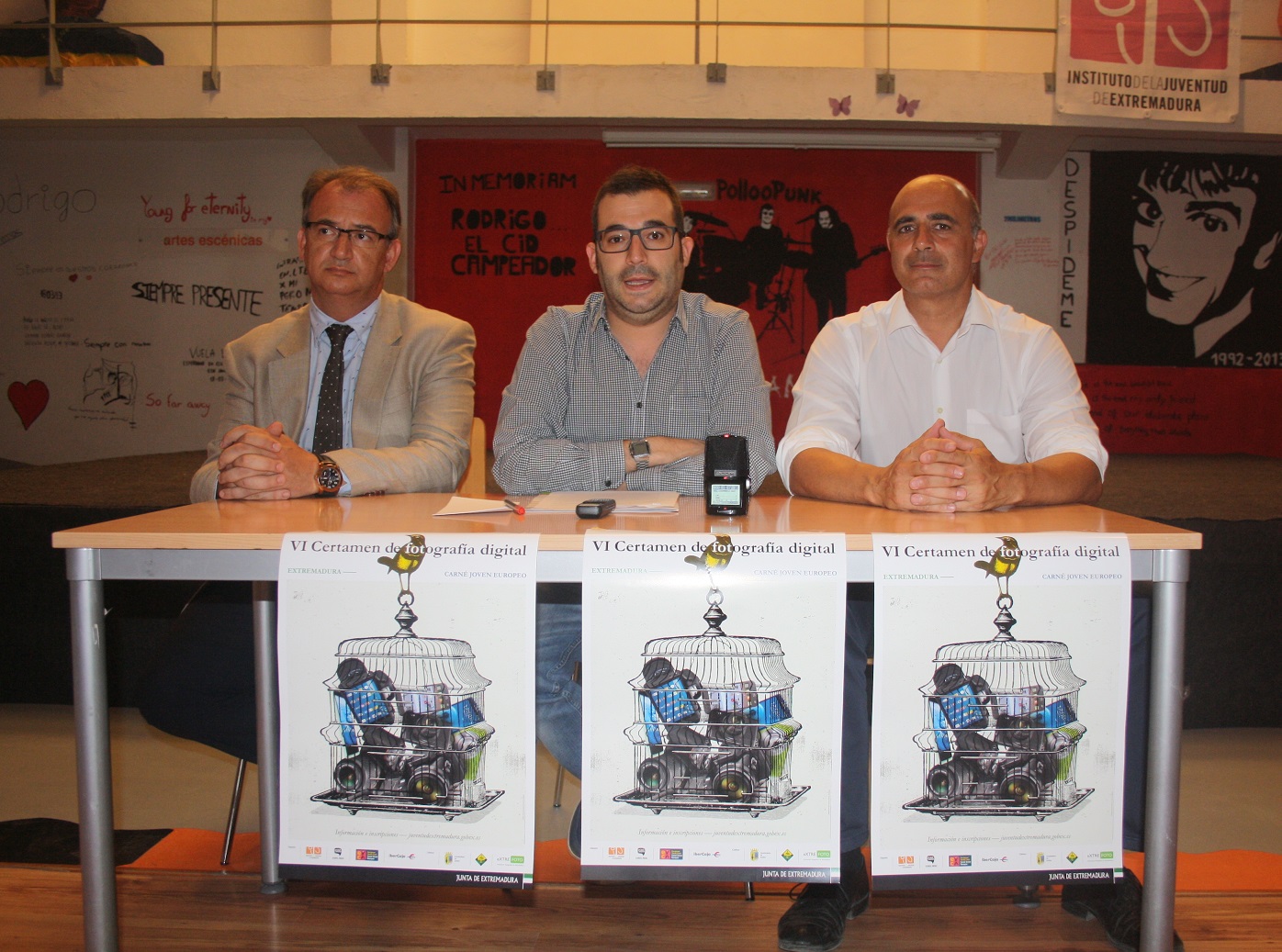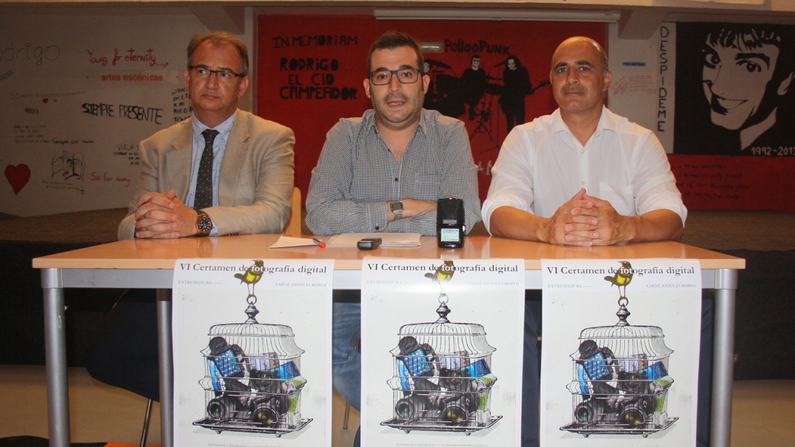 El director general del instituto de la Juventud de Extremadura (IJEX), Felipe González, junto al alcalde de Zafra, José Carlos Contreras, y el gerente comercial de Instituciones y Colectivos de Ibercaja en Extremadura, Alfredo Ferrón, han presentado la sexta edición del Concurso de Fotografía Digital Carné Joven Europeo.