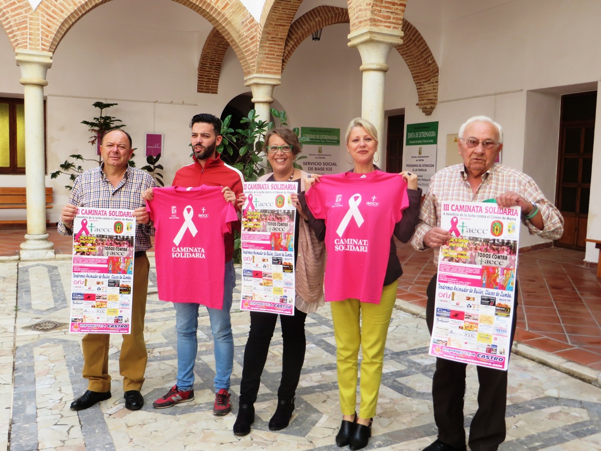 La junta local de la Asociación Española Contra el Cáncer (AECC) celebra el domingo, día 16 de octubre, la III Caminata Solidaria, con motivo del Día Mundial del Cáncer de Mama. La caminata partirá a las 12 horas desde el Parque de la Paz y llegará tras un recorrido corto por las calles y plazas de la ciudad hasta Caseta Municipal de Zafra.