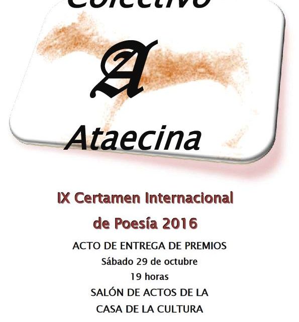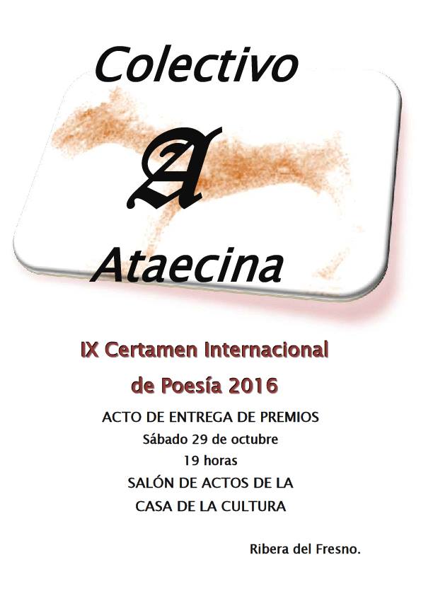 El Concurso Internacional de Poesía del Colectivo Ataecina recibía 249 trabajos en esta nueva etapa que se iniciaba en junio para la edición de 2016. De este modo organizó y convocó lo que dio en llamar su IX Concurso. Este colectivo nació hace 15 años en el Centro de Estudios Extremeños de Terrassa (Barcelona).Tras sus anteriores ocho ediciones en la Comunidad Autónoma de Cataluña, cambia de residencia y será Extremadura, concretamente Ribera del Fresno, Badajoz desde donde arranque esta edición que estableció un 1er Premio de 100 €, trofeo y diploma; un 2º Premio de 75 €, trofeo y diploma y un 3er Premio de 50 €, trofeo y diploma donde el tema y métrica fueron libres.