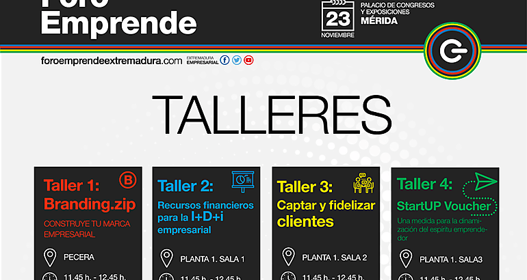 Foro Emprende se desarrollará el 23 de noviembre en el Palacio de Congresos de Mérida. En ella, los asistentes podrán participar en las formaciones que se han diseñado pensando en las necesidades de cada negocio.