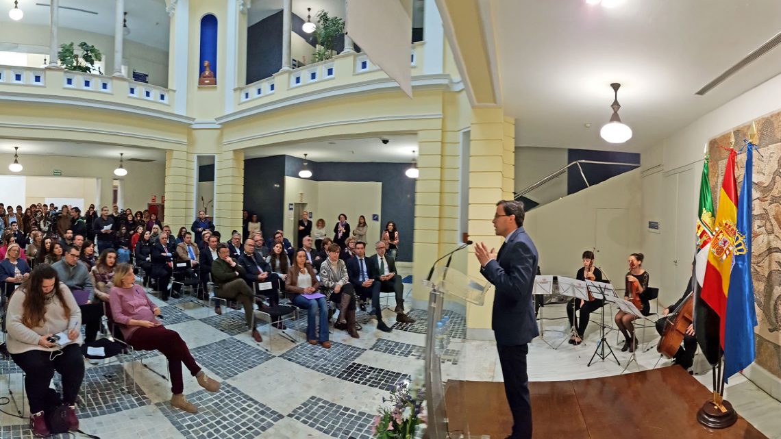 El acto institucional ha estado presidido por Miguel Ángel Gallardo, quien junto con una representación de los alumnos de los institutos citados han desplegado lonas con el diseño y eslogan elegido en el balcón de Presidencia y en el Patio de Columnas del palacio provincial. En ellas puede leerse “25 N: Por más sonrisas” y “Juntos se puede parar”.
