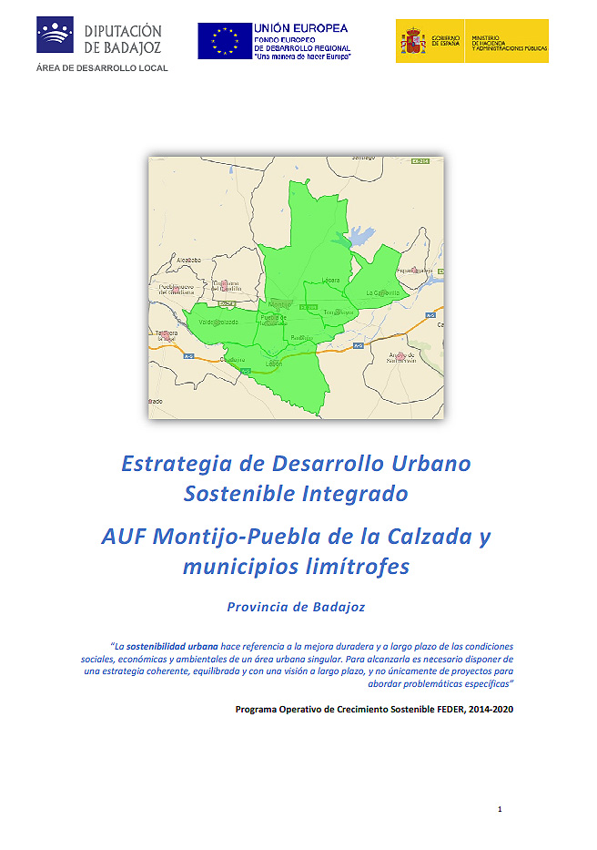 En la Resolución de 12 de diciembre de 2016, de la Secretaría de Estado de Presupuestos y Gastos, por la que se resuelve definitivamente la primera convocatoria para la selección de Estrategias DUSI cofinanciadas mediante el Programa Operativo FEDER de Crecimiento Sostenible 2014-2020, aparece la Estrategia DUSI de Montijo-Puebla de la Calzada y municipios limítrofes como Estrategia seleccionada con un total de 5 millones de euros de ayuda FEDER. A través de esta cofinanciación se llevarán a cabo diversas actuaciones en los municipios de La Garrovilla, Lobón, Montijo, Puebla de la Calzada, Torremayor, Valdelacalzada además de las entidades menores Barbaño, Guadajira y Lácara.
