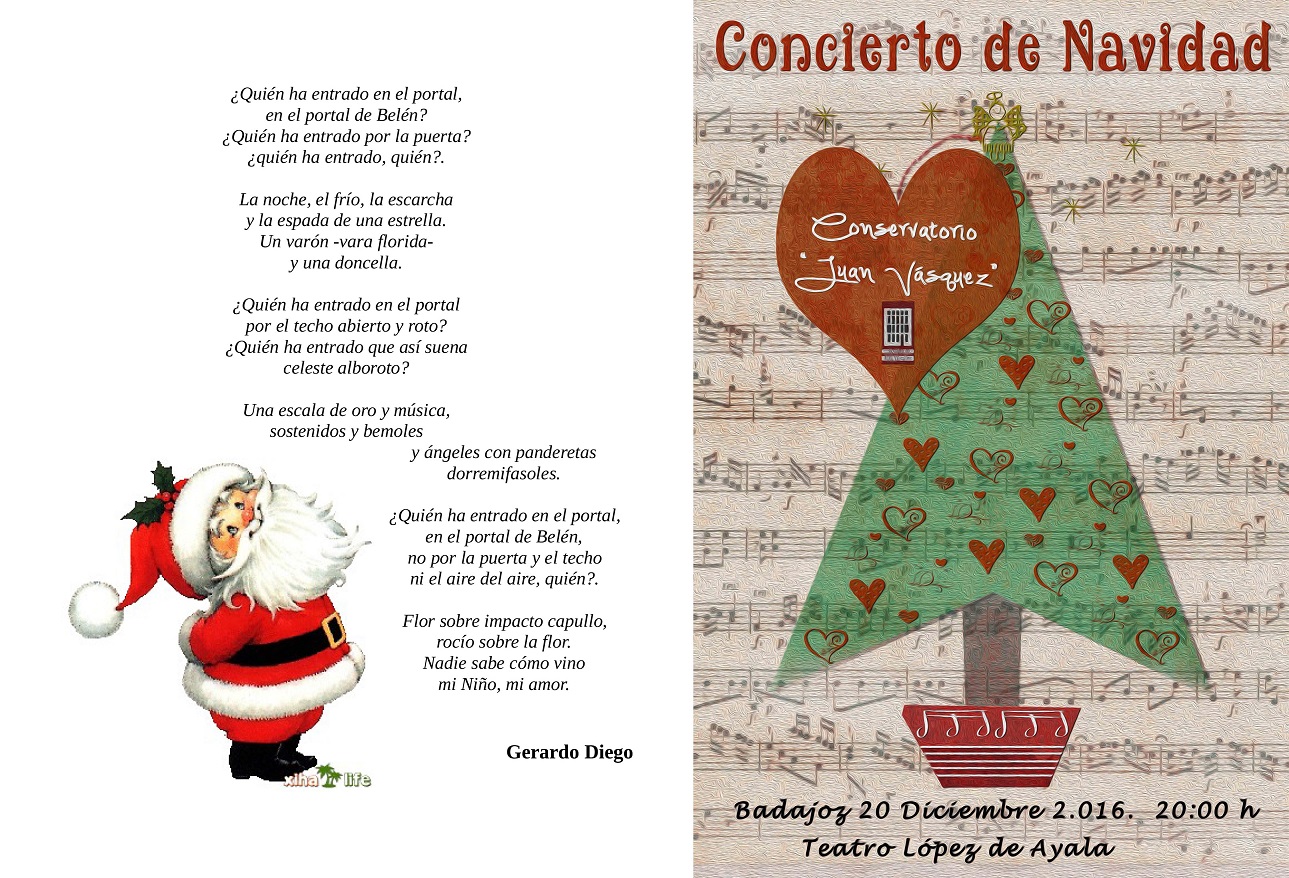 Alumnos del Conservatorio Profesional Juan Vázquez protagonizarán el Concierto de Navidad que tendrá lugar el 20 de diciembre a las 20,00 horas en el Teatro López de Ayala de Badajoz y en el que también intervendrá la Banda de Música de centro dirigida por el profesor Santiago Méndez.