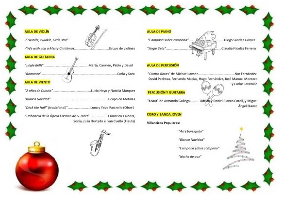 Alumnado del aula de violín abrirá esta tarde navideña con las piezas ‘Twinkle, twinkle, litle star’ y ‘We wish you a Merry Christmas’. Este último villancico será interpretado por el grupo de violines al completo.