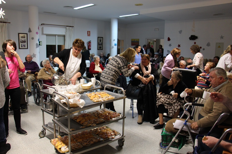 Acompañados por sus familiares y amigos, una representación de la Corporación Municipal y los trabajadores del centro, los residentes celebraron su día de Navidad el viernes 23 de diciembre con las actuaciones del coro de la propia residencia –llamado ‘Son de la Residencia- acompañados por algunos componentes del coro ‘Estrella y Camino’, Norma –una antigua trabajadora de la residencia- y sus hijos ofrecieron un baile típico de su país por último la actuación de dos jóvenes promesas del flamenco, Iván y Paco a la guitarra. La tarde finalizó con una merienda a base de chocolate y dulces caseros.