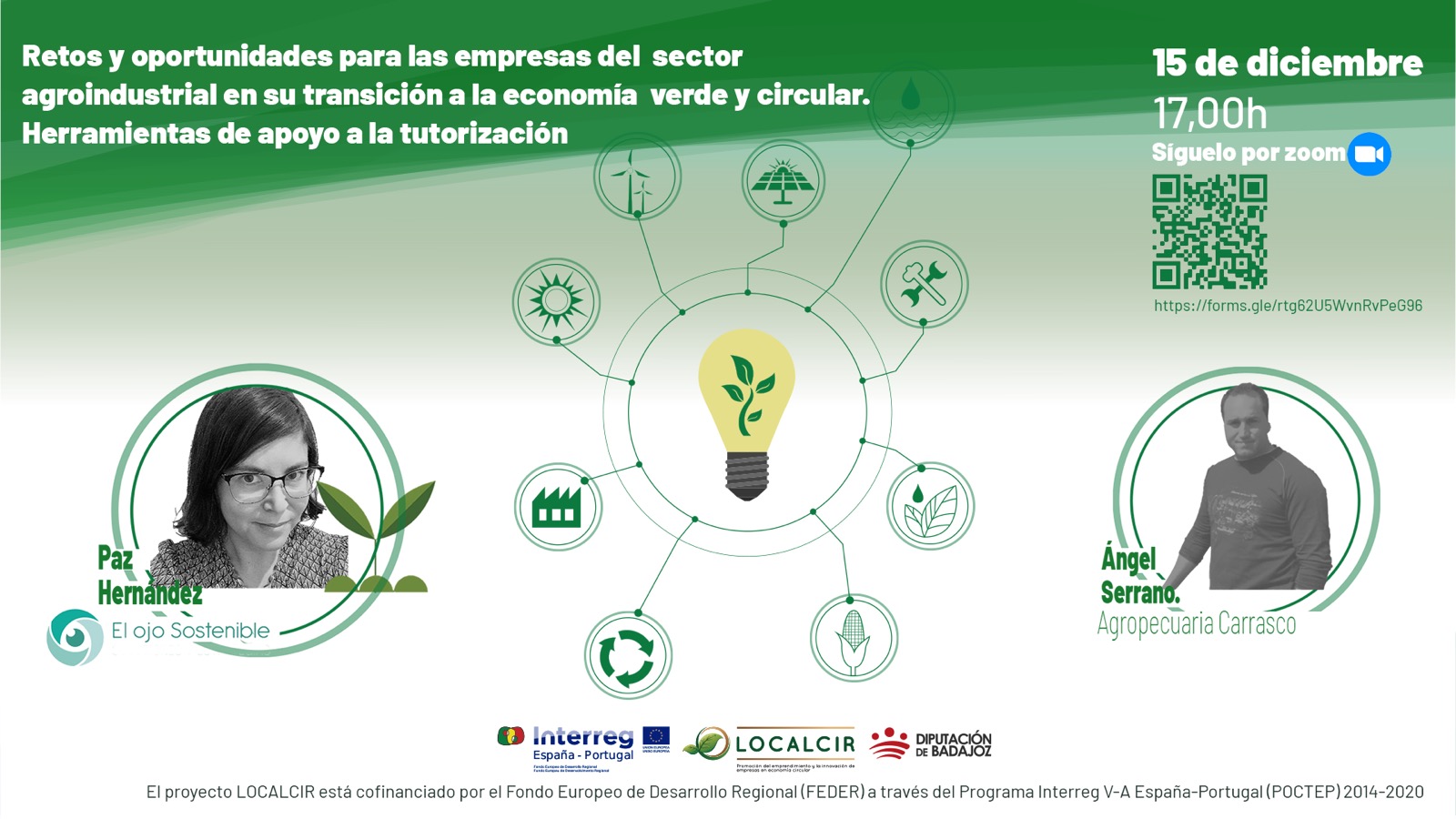 El primero de los cinco seminarios denominado “Retos y oportunidades para las empresas del sector agroindustrial en su transición a la economía verde y circular. Herramientas de apoyo a la tutorización”, tiene lugar el miércoles 15 de diciembre a las 17:00 horas a través de la plataforma telemática de Zoom.