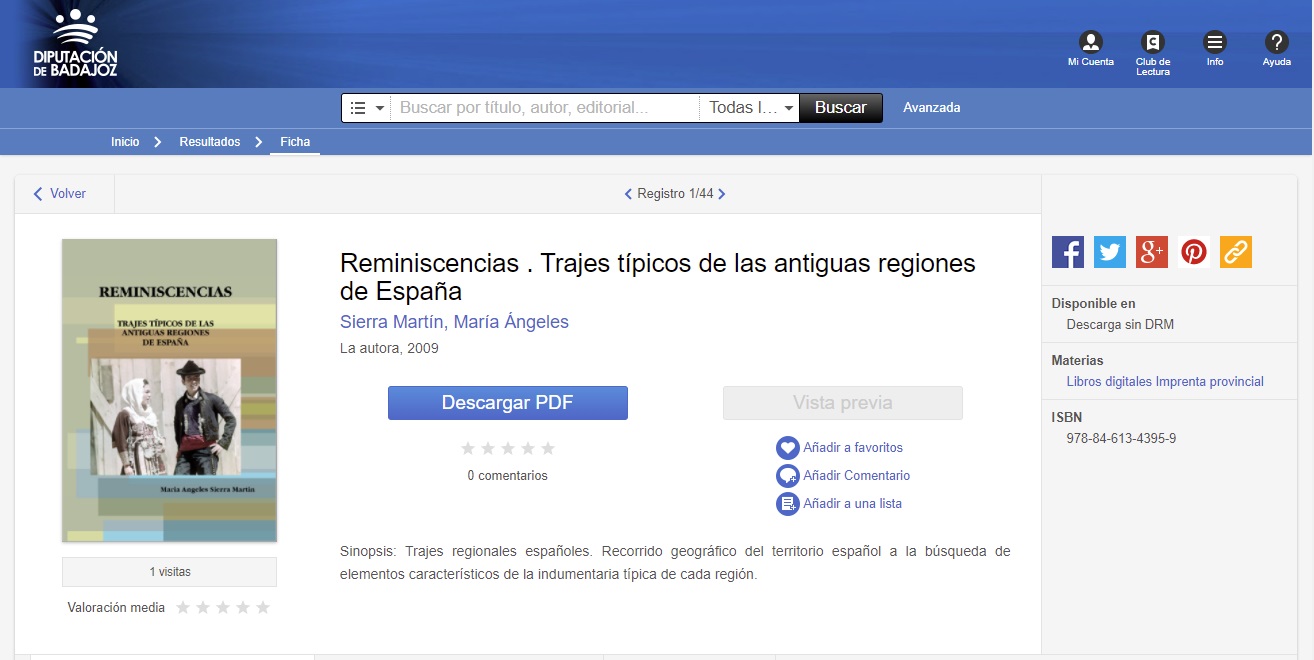 Cualquier persona que sea socia de alguna de las bibliotecas públicas municipales de la provincia, o bien de las bibliotecas de las barriadas de Badajoz y del Centro de Estudios Extremeños, podrá disponer de este título mediante descarga directa (sin DRM) de la plataforma, y pasará a formar parte de su biblioteca personal.