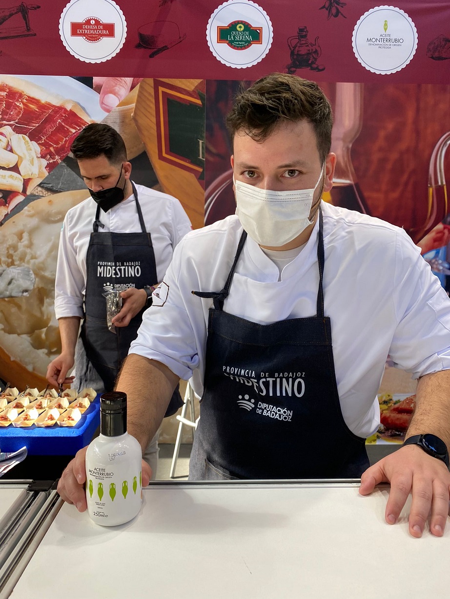 Durante estos días, el stand de la institución provincial ofrece degustaciones de platos elaborados por JuanMa Salgado, chef del restaurante Dromo de Badajoz, con productos con Denominación de Origen e Indicación Geográfica Protegida de la provincia.