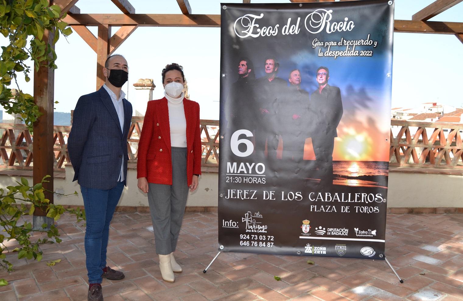 Jerez de los Caballeros acogerá el primer concierto en Extremadura de la ‘Gira para el recuerdo y la despedida 2022’ de Ecos del Rocío. Así lo han destacado hoy la alcaldesa de esta ciudad, Virginia Borrallo, y Juan Luis Rodríguez, en representación de ‘Zafra Gastronómica’, al frente de la organización de este evento que se celebrará el 6 de mayo próximo en la Plaza de Toros jerezana.