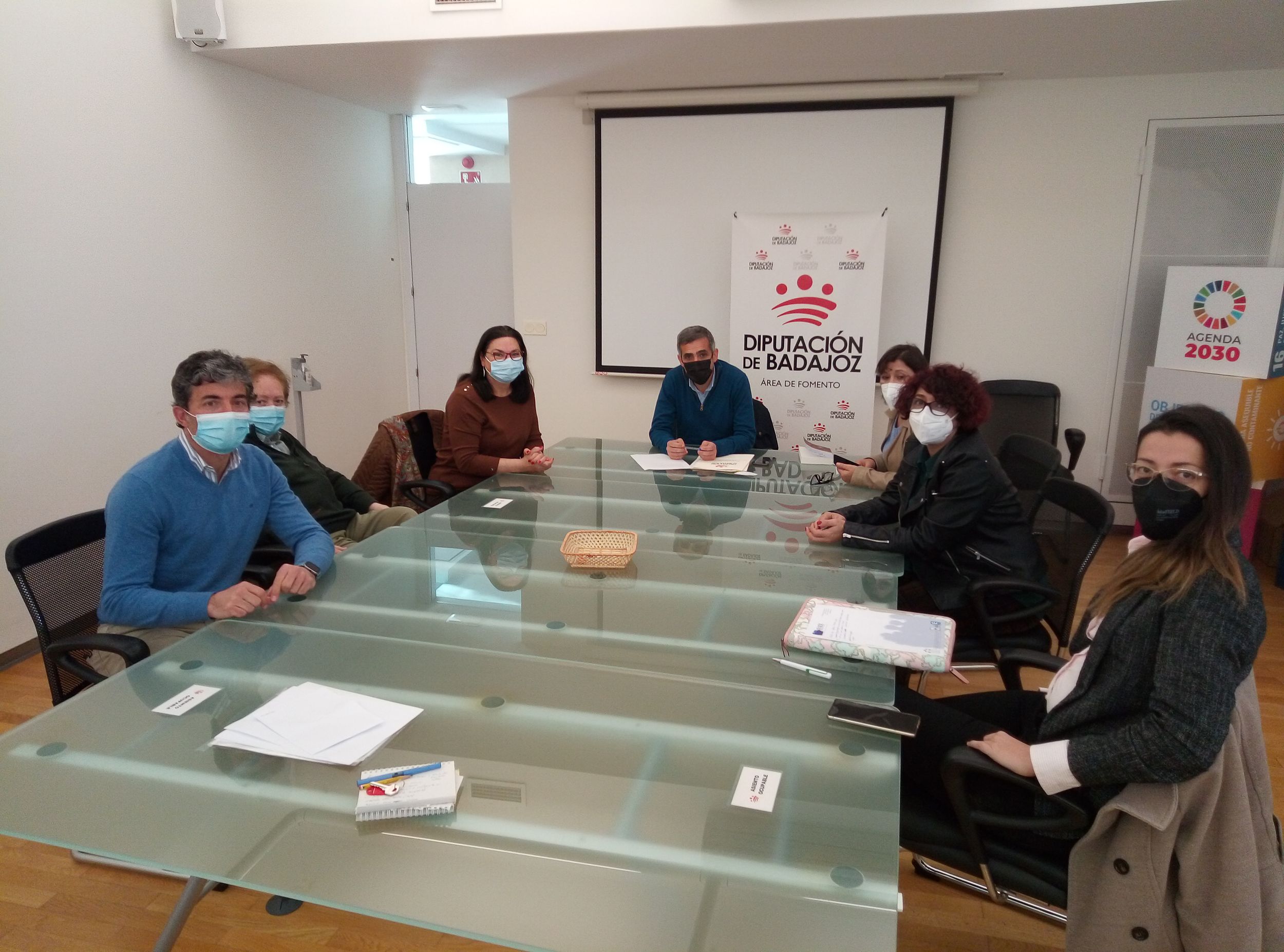 A la Reunión también asistieron M.ª Emilia Parejo, directora del Área de Cultura, Juventud y Bienestar Social de la Diputación, y José Carlos Cobos, director del Área de Fomento.