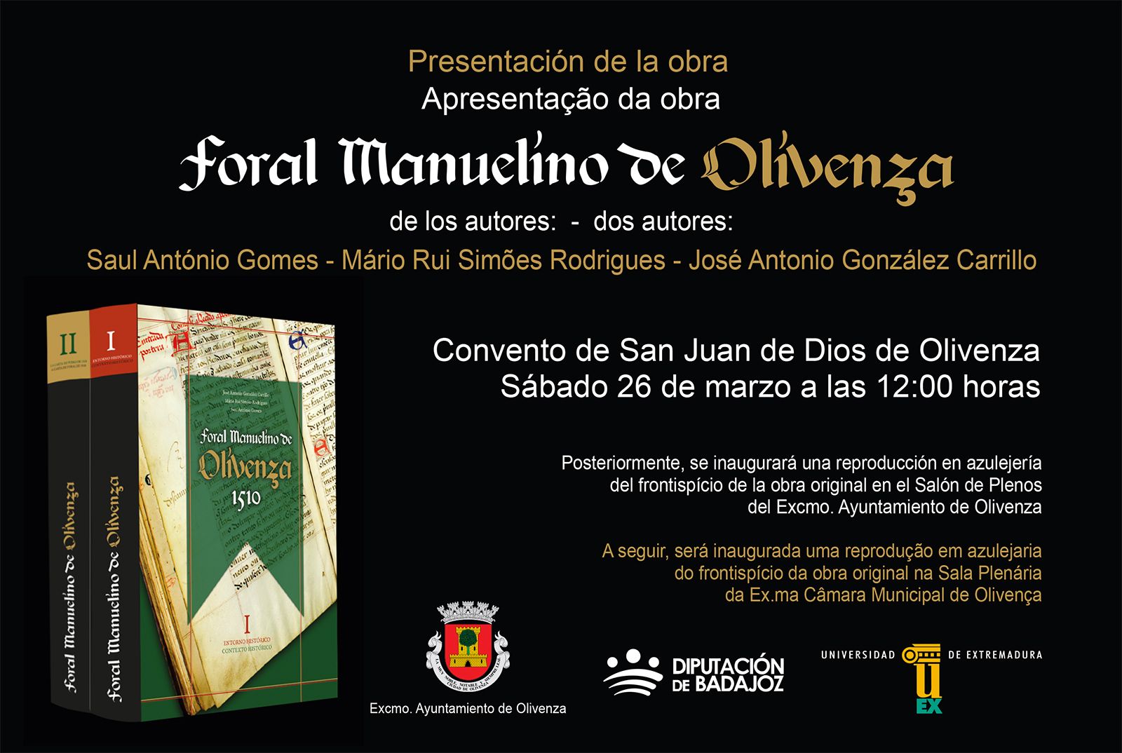 Al acto de presentación asistirán los autores de la obra; el Alcalde de Olivenza, Manuel José González Andrade; el Diputado de Cultura de Diputación de Badajoz, Francisco Martos y el historiador y medievalista español, profesor de la Universidad de Extremadura, Francisco García Fitz.