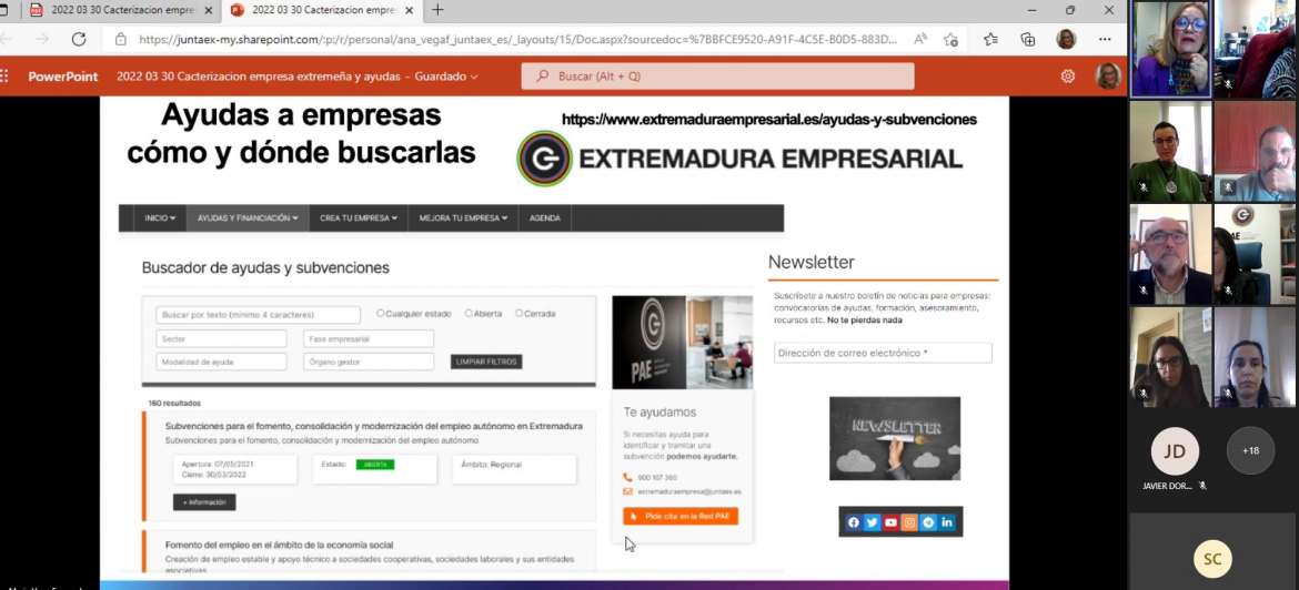 Ana Vega ha valorado algunos datos actualizados en relación a la caracterización de la empresa extremeña y ha trasladado a las organizaciones empresariales y entidades participantes la relación de fondos públicos de apoyo a las empresas tanto de ámbito regional así como específicos del Plan de Recuperación, Transformación y Resiliencia.