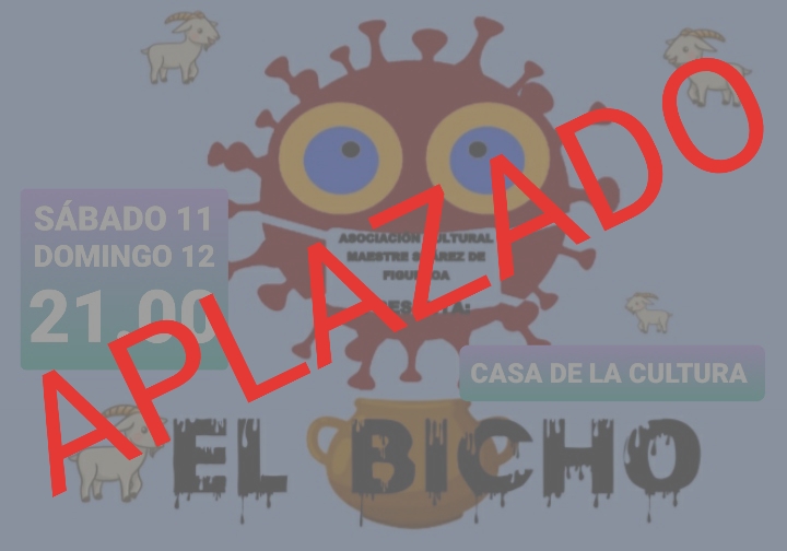 La Asociación Cultural Maestre Suárez de Figueroa ha anunciado que la obra teatral “El Bicho”, que se iba a representar este sábado 11 y el domingo 12 de junio en Fuente del Maestre, queda aplazada hasta nuevo aviso.