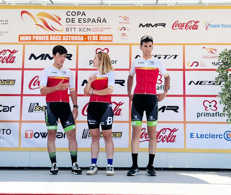 Foto portada: Manu Cordero, María Díaz y Miguel Benavides líderes de la Copa de España XCM Élites y Sub23
