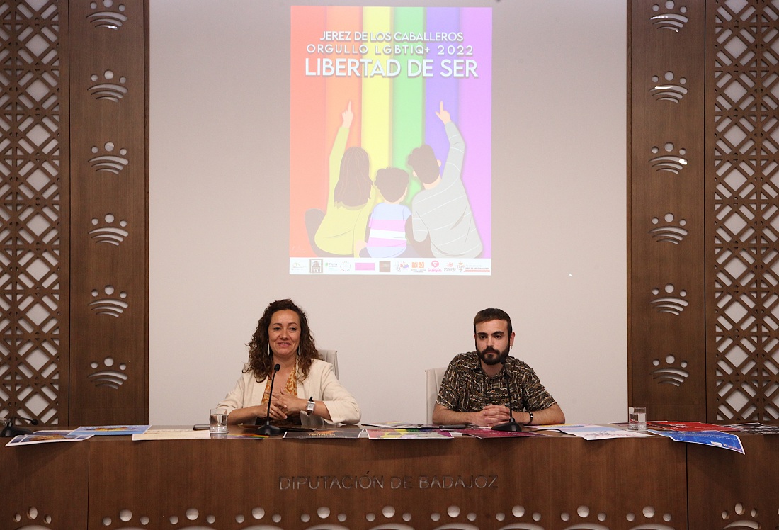 La vicepresidenta segunda de la Diputación de Badajoz y alcaldesa de Jerez de los Caballeros, Virginia Borrallo, junto con el concejal de Igualdad y Diversidad, David Trejo, presentaron hoy la Semana del Orgullo que se desarrollará esta localidad del 27 de junio al 3 de julio.