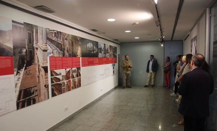 La muestra es fruto del trabajo realizado durante siete años por un equipo de personas dirigido por los arquitectos Jesús Martínez Vergel y Rafael Mesa Hurtado. El equipo ha hecho un análisis crítico para saber cómo era en la época romana cuando aún lucía todos sus revestimientos de estuco rojo, sus telas, toldos, los telones y las maderas de la escena.