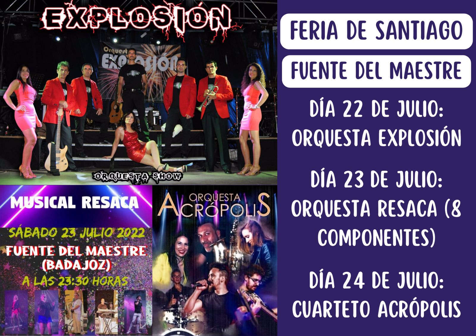 El Ayuntamiento de Fuente del Maestre ha organizado un programa festivo con diversas actividades para celebrar los días 22, 23 y 24 de Julio la Feria de Santiago.