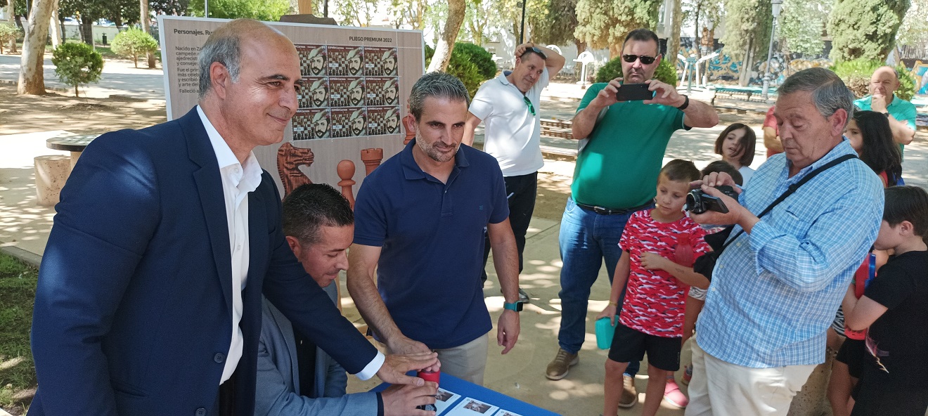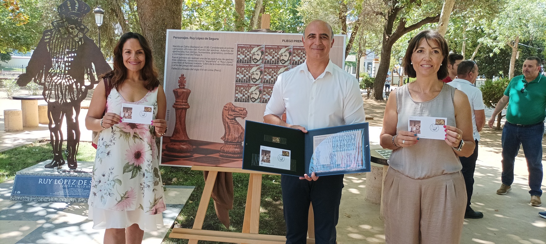 Por su parte, el Jefe del Sector de la gerencia de Productos y Servicios del Área Centro de Correos, Carlos González, que ha alabado el encanto esencial del espacio elegido para presentación, el Rincón de Ruy López en el Parque de la Paz de Zafra, ha explicado que desde Correos se va a publicitar, promocionar y dar visibilidad a la figura de Ruy López de Segura, así como del juego del ajedrez y de la ciudad de Zafra mediante los envíos postales y el coleccionismo.