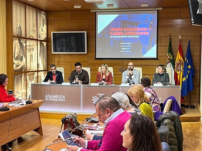 Cruz Roja ha celebrado este viernes un acto en la Asamblea de Extremadura con el objetivo de dar a conocer a la ciudadanía extremeña el trabajo llevado a cabo por esta institución humanitaria desde el inicio de la guerra en Ucrania, así como los retos de futuro que afrontará en este país de Europa del Este a causa del conflicto bélico.