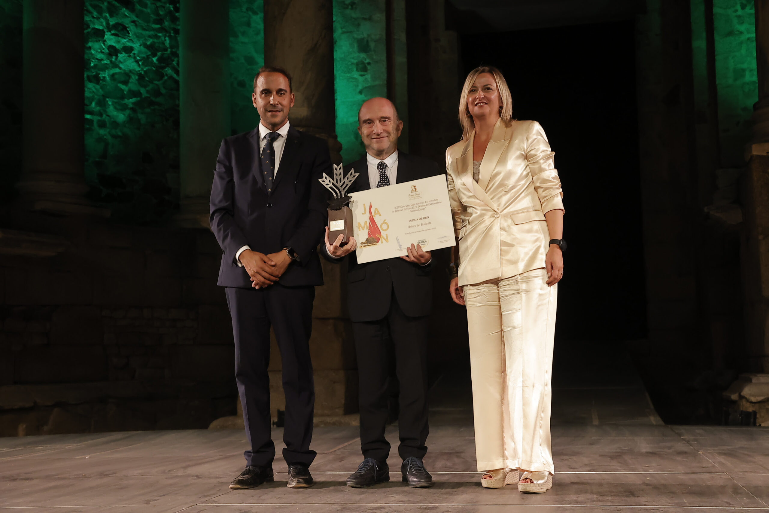 Dos de los grandes protagonistas de este evento fueron el jamón ‘Ibérico del Brillante’ y el vino ‘Señorío de Pedraza’, ganadores cada uno de ellos en sus respectivos concursos como Espiga Oro al mejor Jamón DO Dehesa de Extremadura y el Gran Espiga al vino DO Ribera del Guadiana con mayor puntuación, respectivamente. En total se entregaron 19 Premios Espiga en las diferentes categorías y se rindió homenaje a personalidades vinculadas con su trayectoria a estos 25 años de reconocimiento a los mejores productos y ganaderías del ibérico y de los viñedos extremeños.