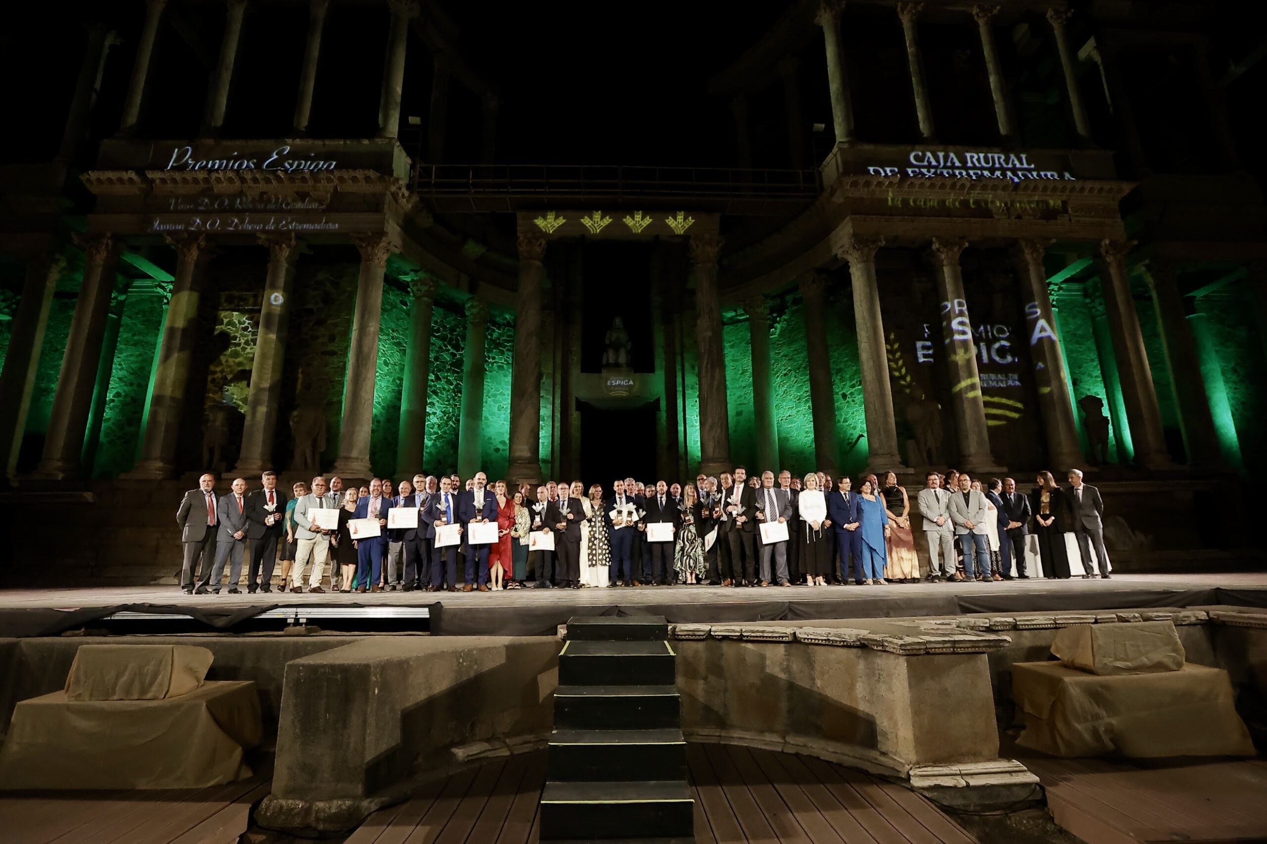 Caja Rural de Extremadura celebró esta noche, 25 de septiembre, el 25º Aniversario de sus Premios Espiga ‘Jamones Ibéricos DO Dehesa de Extremadura’ y ‘Vino DO Ribera del Guadiana’ con una gala muy especial en un escenario inmejorable, el Teatro Romano de Mérida.