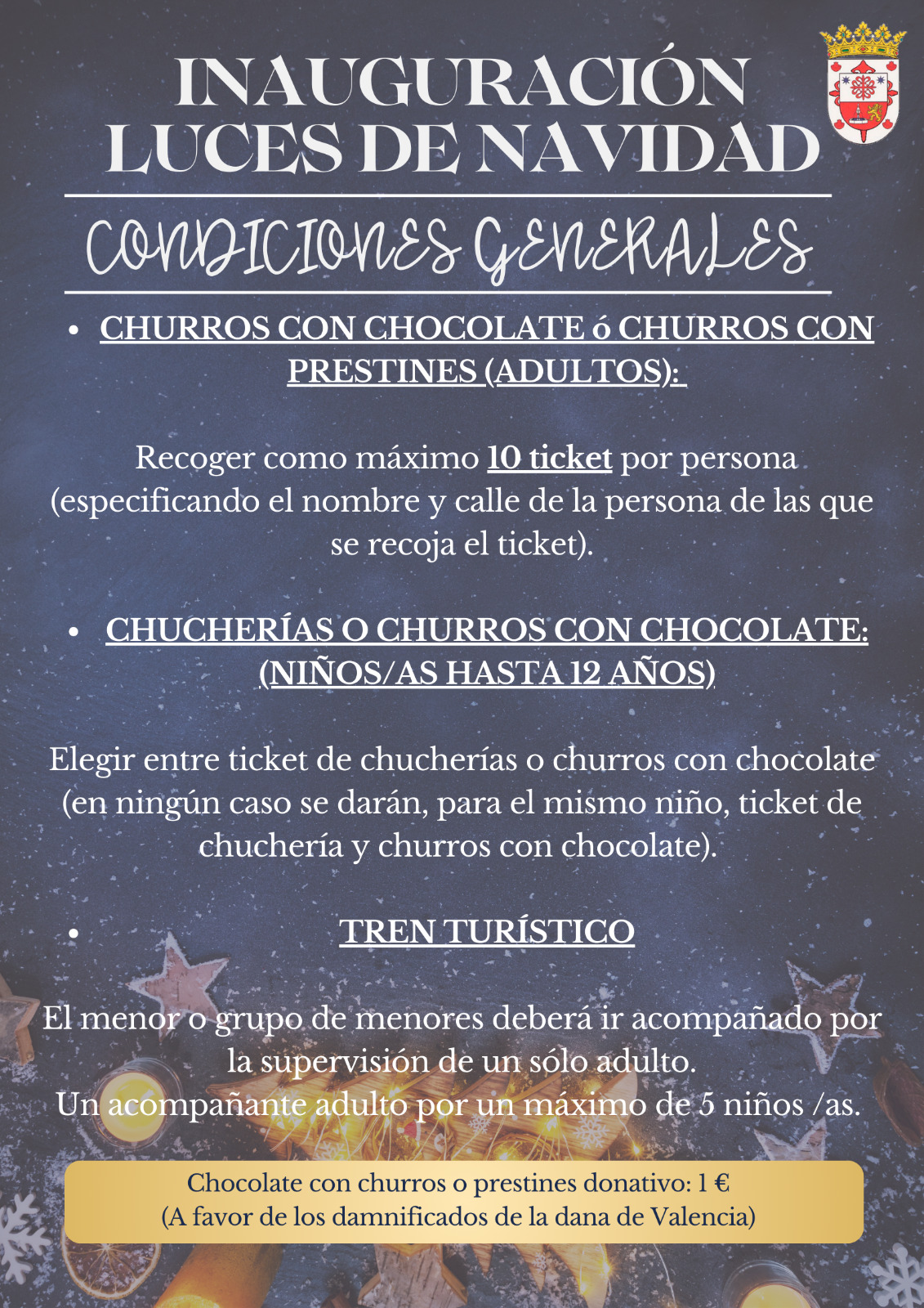 A todo esto hay que añadir que para los adultos se entregará chocolate con churros o prestines. Esta entrega tendrá un fin solidario, ya que al recoger los tickets habrá que dar un donativo de 1 € que irá destinado a favor de los damnificados por la DANA en Valencia.