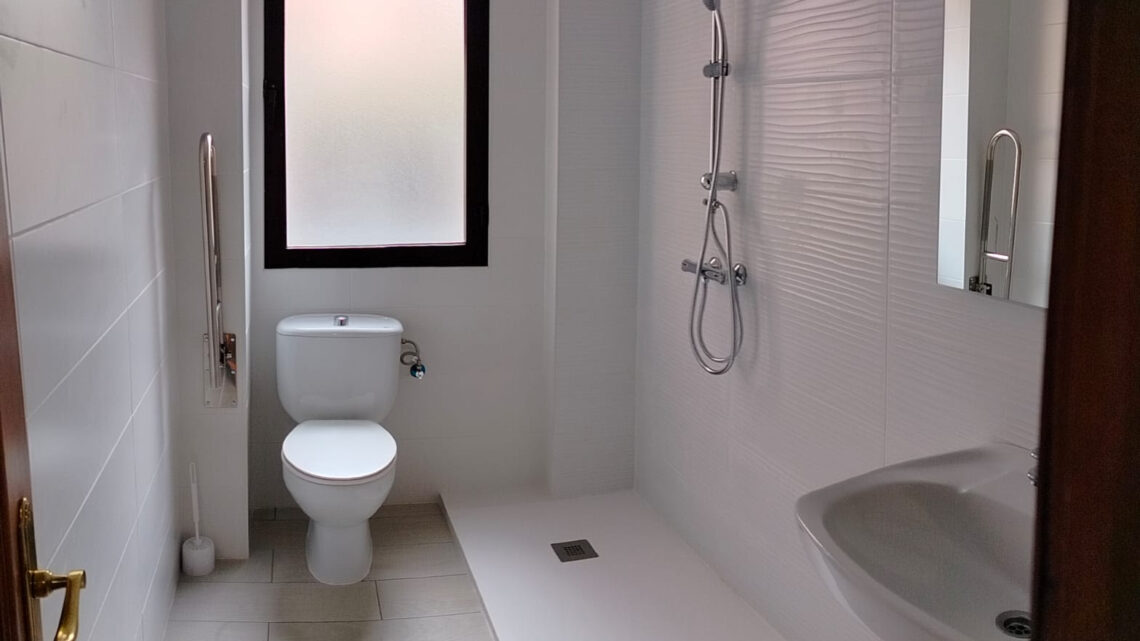 En concreto, se ha reformado el segundo baño, de forma que el piso cuenta ya con dos baños adaptados en altura, sin barreras a la ducha, con suelo antideslizante, agarradores de ducha y wáter y adaptación a personas con colostomías.