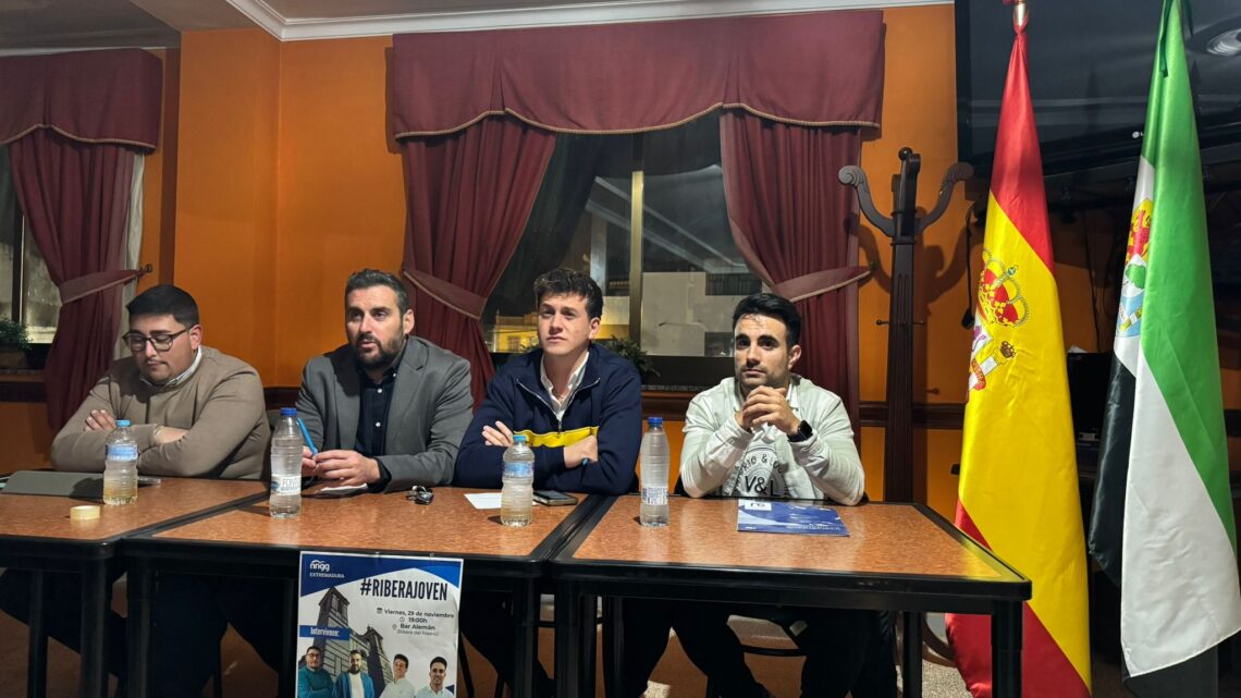 Los altos del Bar Alemán de Ribera del Fresno acogieron un significativo encuentro bajo el lema #RIBERAJOVEN, que reunió a representantes de Nuevas Generaciones (NNGG) de Extremadura. El acto contó con la participación de Antonio Pérez, presidente de NNGG Ribera; Miguel Araya, alcalde de Ribera del Fresno; Pedro J. Gordillo, presidente de NNGG Extremadura; y Maikel Ferrera, secretario general de NNGG Badajoz.