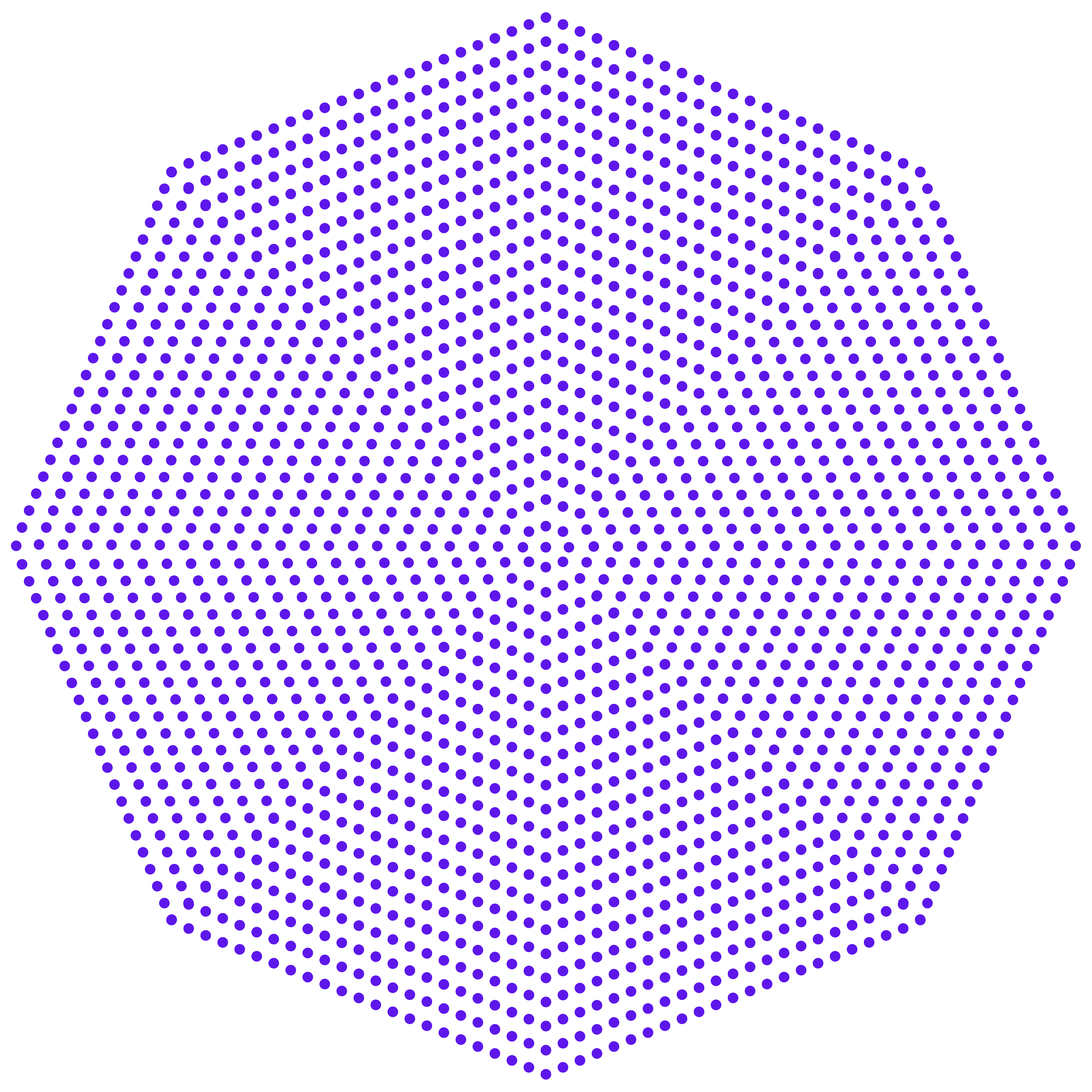 Para el caso n=23, el valor de la suma es 2025, lo que significa que podría formarse con 22 anillos octogonales y un punto central.