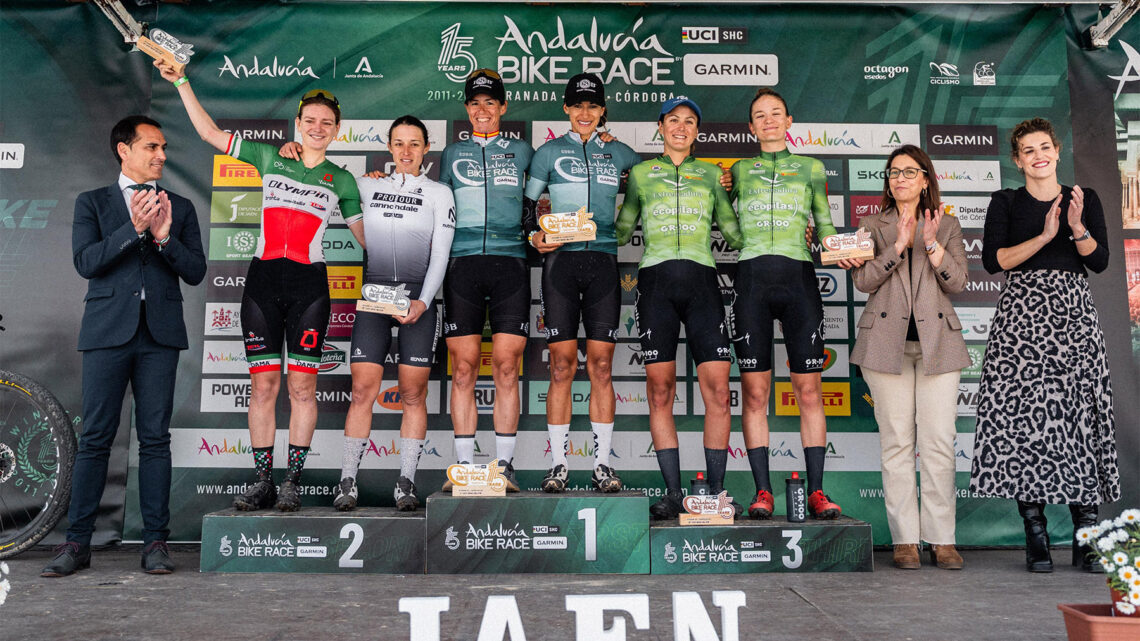 Excepcional resultado en Jaén del Extremadura-Ecopilas UCI MTB Team, territorio donde se disputaba la cuarta etapa de Andalucía Bike Race by GARMIN, de 40 kms y 1330 metros de desnivel positivo y en la que Natalia Fischer y María Reyes Murillo, han subido al podio como terceras clasificadas en la etapa, ascendiendo  hasta la sexta plaza de la general en la categoría élite mujeres.