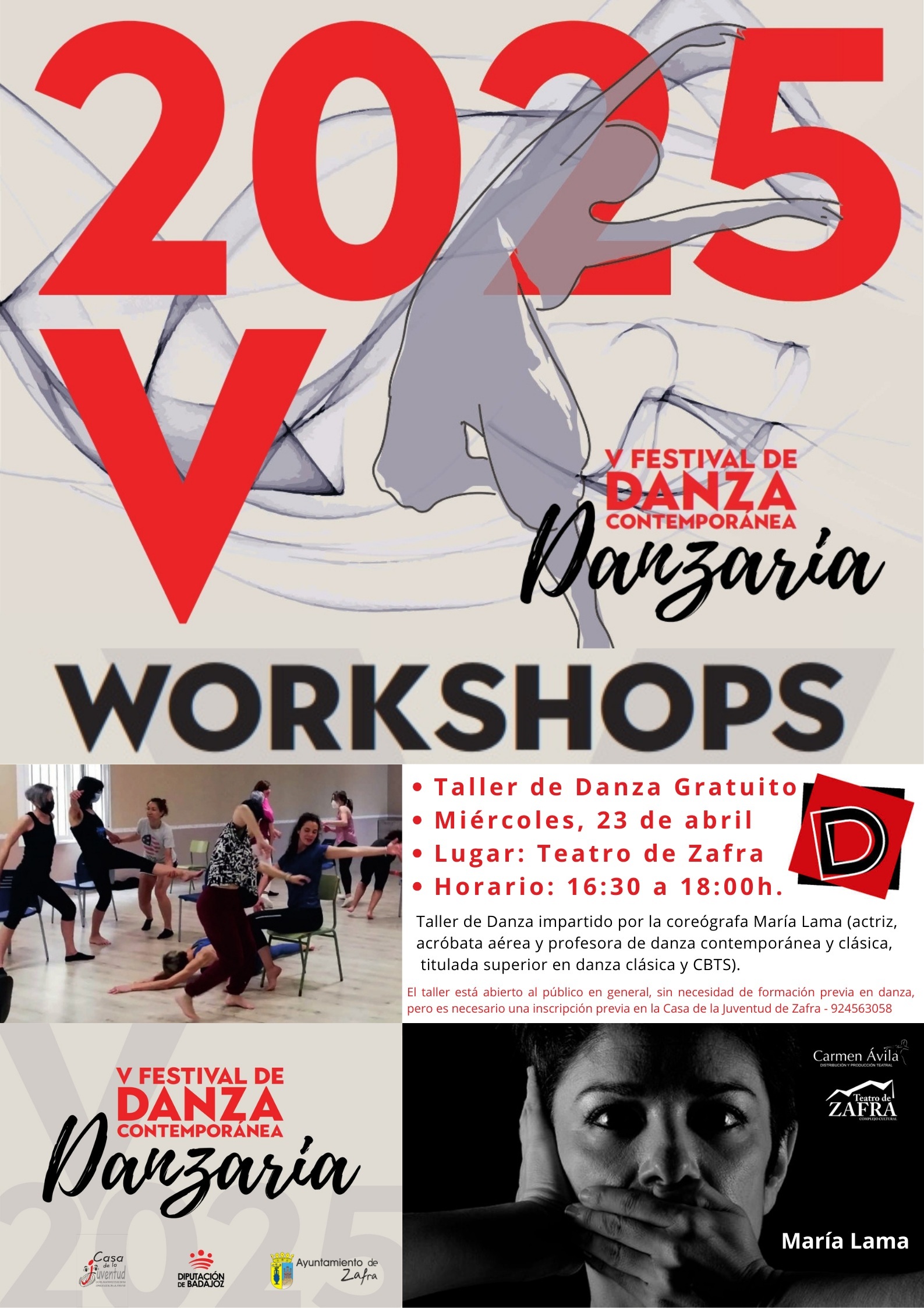 La compañía de danza de María Lama va a llevar a cabo un taller de danza, denominado “Cuerpos que hablan”, el 23 de abril; y al día siguiente, pondrá en escena la obra de danza titulada “¡Invisibles!”. Las dos actividades, también promovidas por el ayuntamiento, se realizarán en el Teatro de Zafra y forman parte de la V edición del programa ‘Danzaria’, de Diputación de Badajoz.