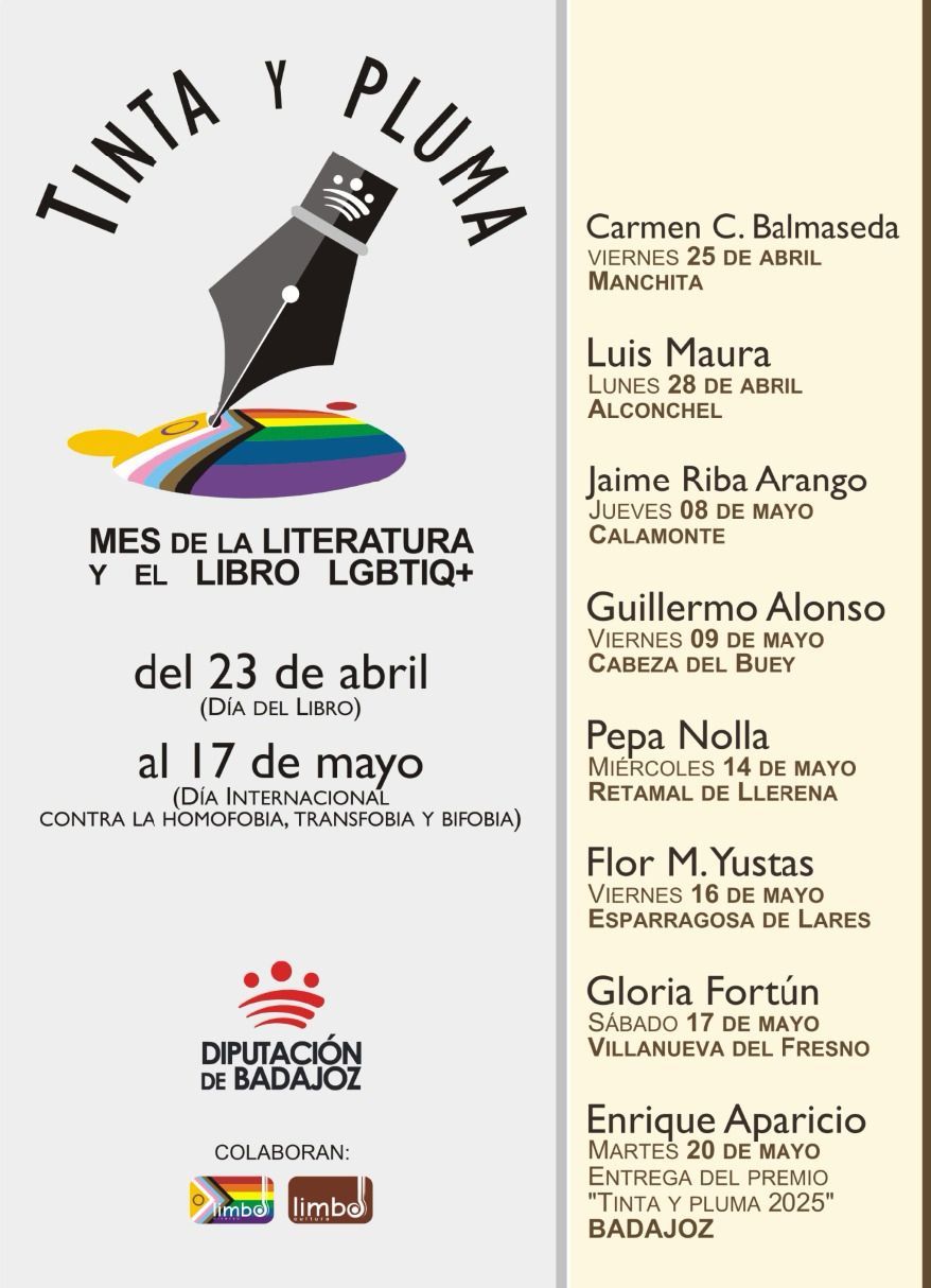 La Diputación de Badajoz, a través del Área de Igualdad, junto con la asociación Limbo Cultura, han puesto en marcha la II edición de ‘Tinta y Pluma’, un programa que se desarrolla con presentaciones de libros, encuentro con autores y autoras y la entrega del II Premio ‘Tinta y Pluma, que se celebrarán entre los meses de abril y mayo.